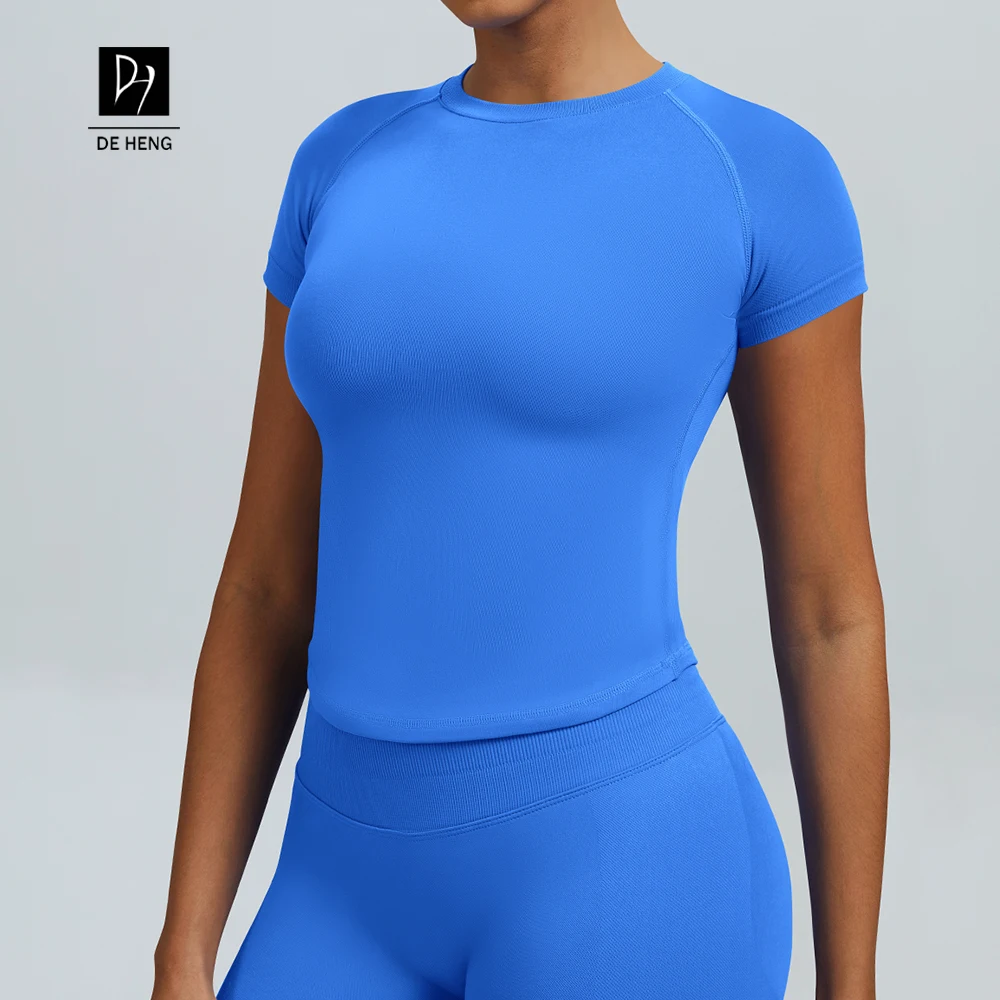 Custom Women Sports Sleeve Top Lightweight Breathable Quick Dry Seamless Yoga Top Sweat Wicking Fitness Women Yoga Short Sleeve