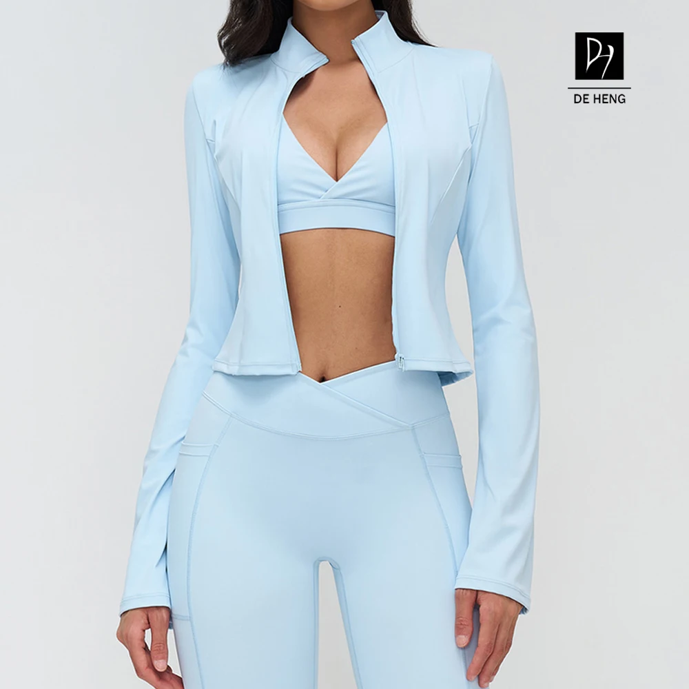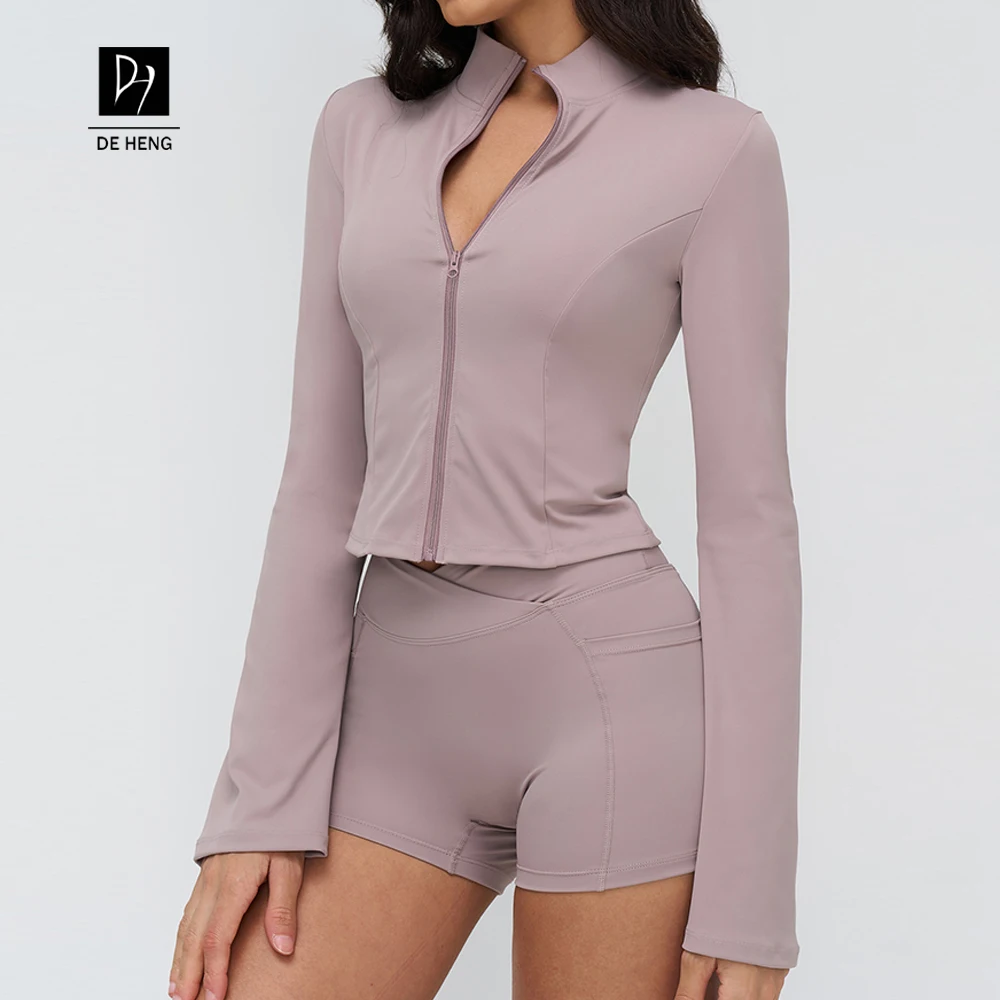 YISHENHON New Arrivals Quick-drying Women's Tight Running Sports Fitness Yoga Jacket Activewear Zip Long Sleeve Workout Crop Top