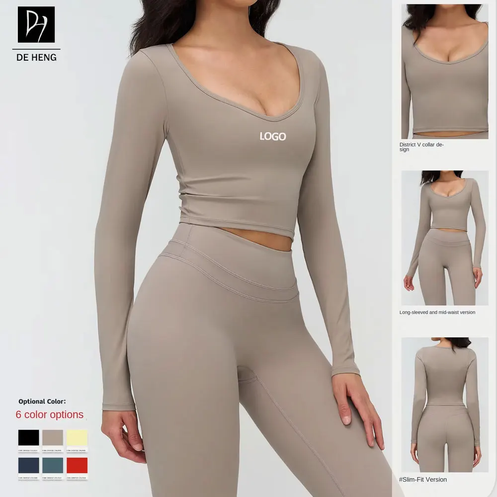 New Plus Size Women V-Neck T Shirt High Elastic Tight Slim Workout Fitness Sportswear Yoga Long Sleeve Tops for Womens