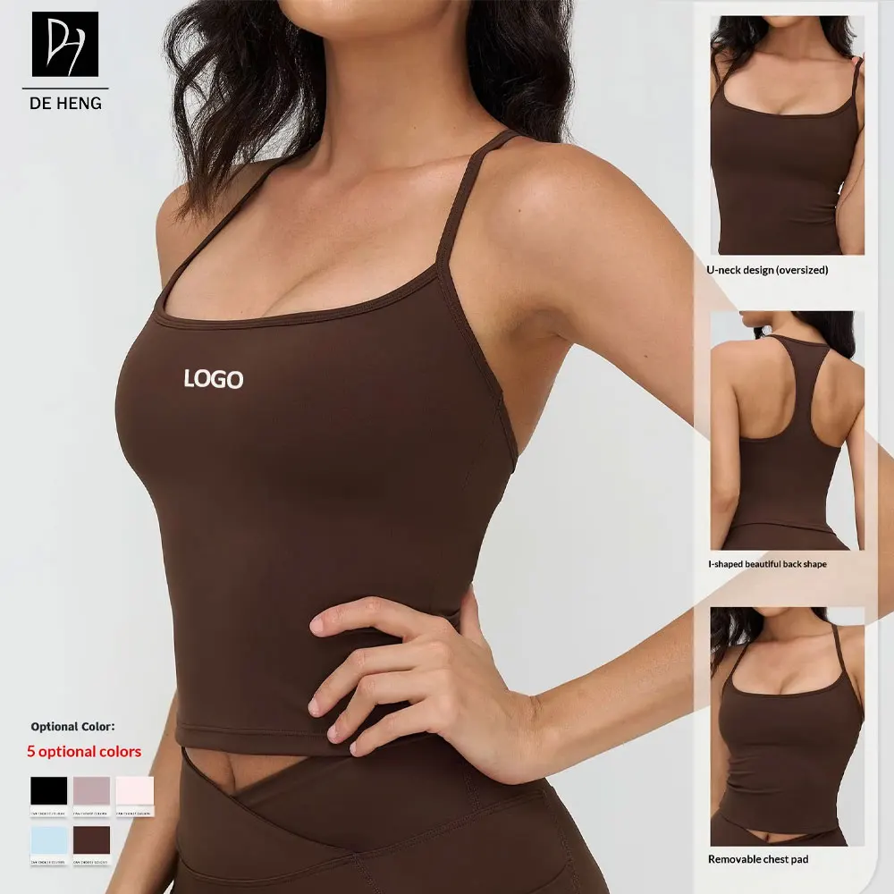New Big Cup Halter Backless Yoga Vest U-Back Sweat-Wicking High Support Spaghetti Strap Racerback Women Sports Bras with Pads