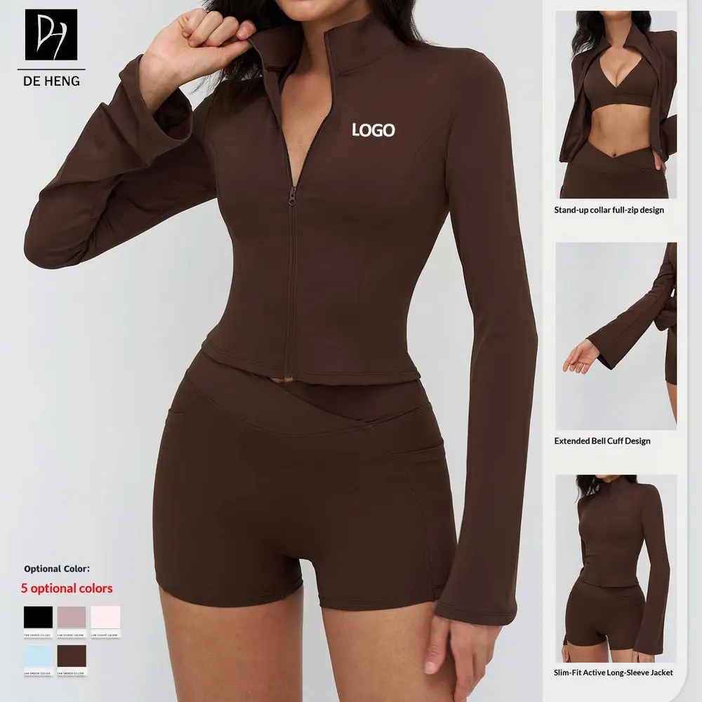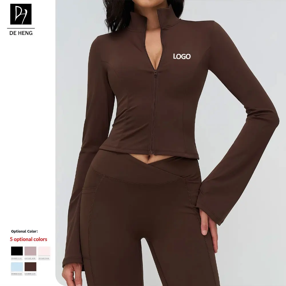 New Yoga Gym Full Zip up Long Sleeves Jacket Tops Deportivos Running Fitness Wear Activewear Stand Neck Design Women Yoga Jacket
