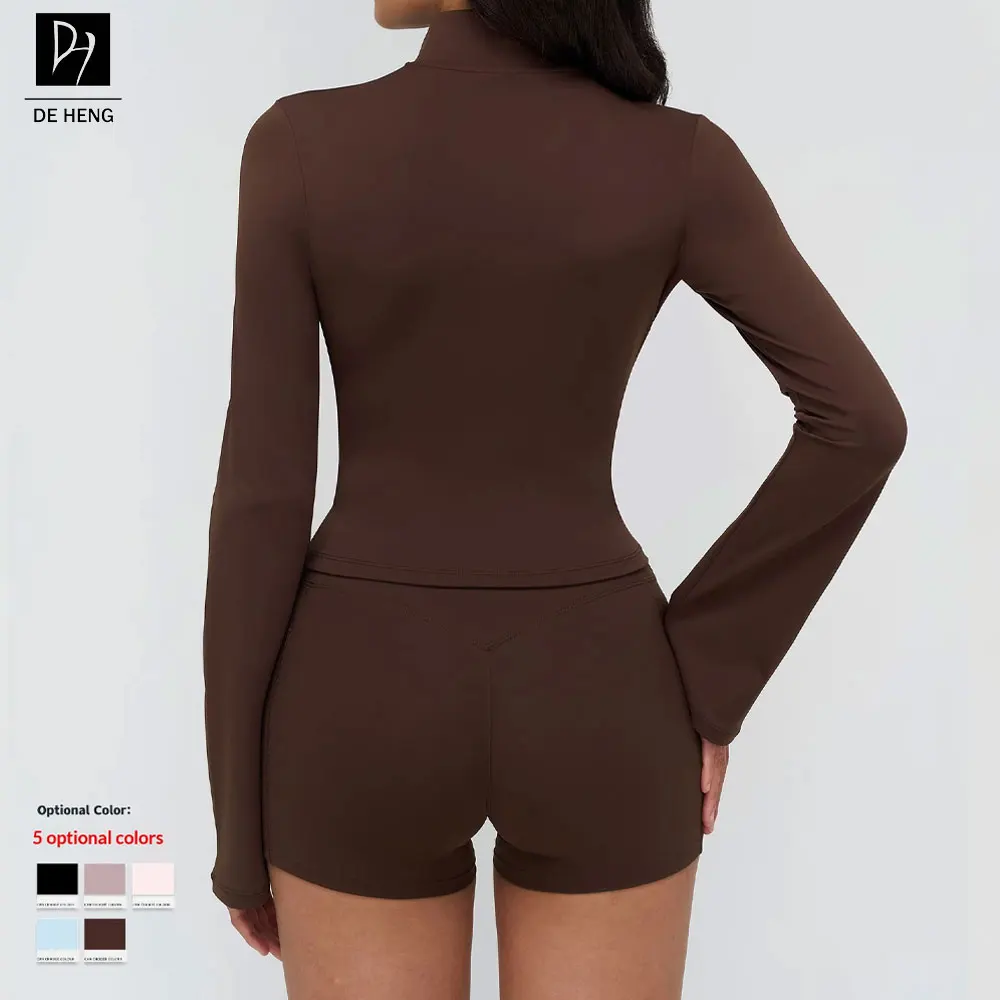 YISHENHON New Arrivals Quick-drying Women's Tight Running Sports Fitness Yoga Jacket Activewear Zip Long Sleeve Workout Crop Top