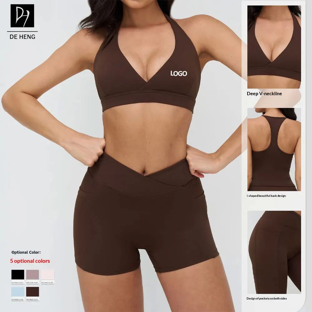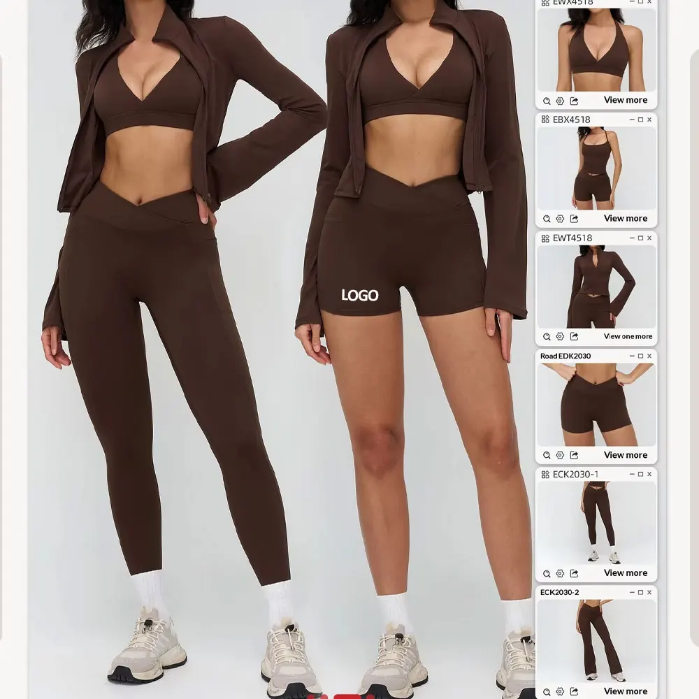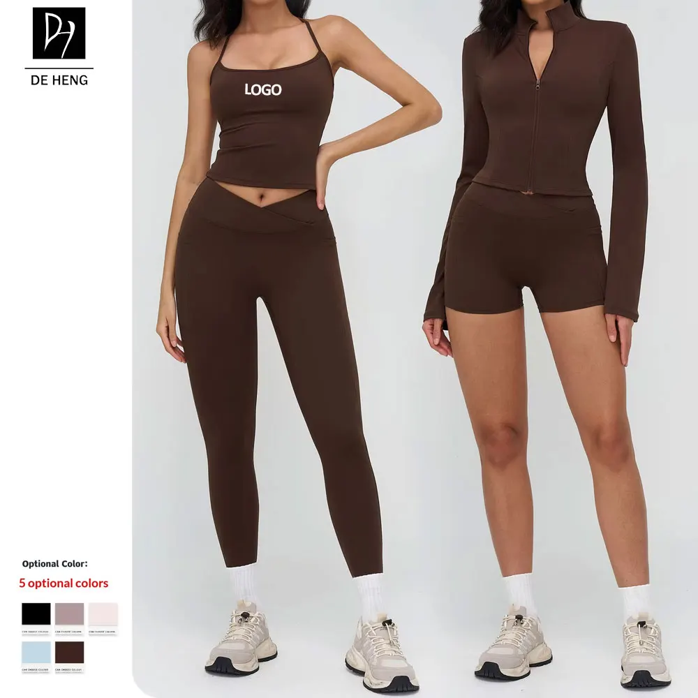 New Custom Sports Bra and Leggings Set Solid Stand Collar Zipper Outdoor Running Fitness Sports 2-Piece Set Women Yoga Sets