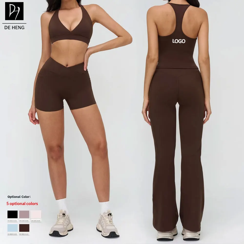 YISHENHON Recyclable Fabric Quick Dry Yoga V Waist Gym Leggings Running Workout Wide Leg Pants Flare Woman Sport Pants