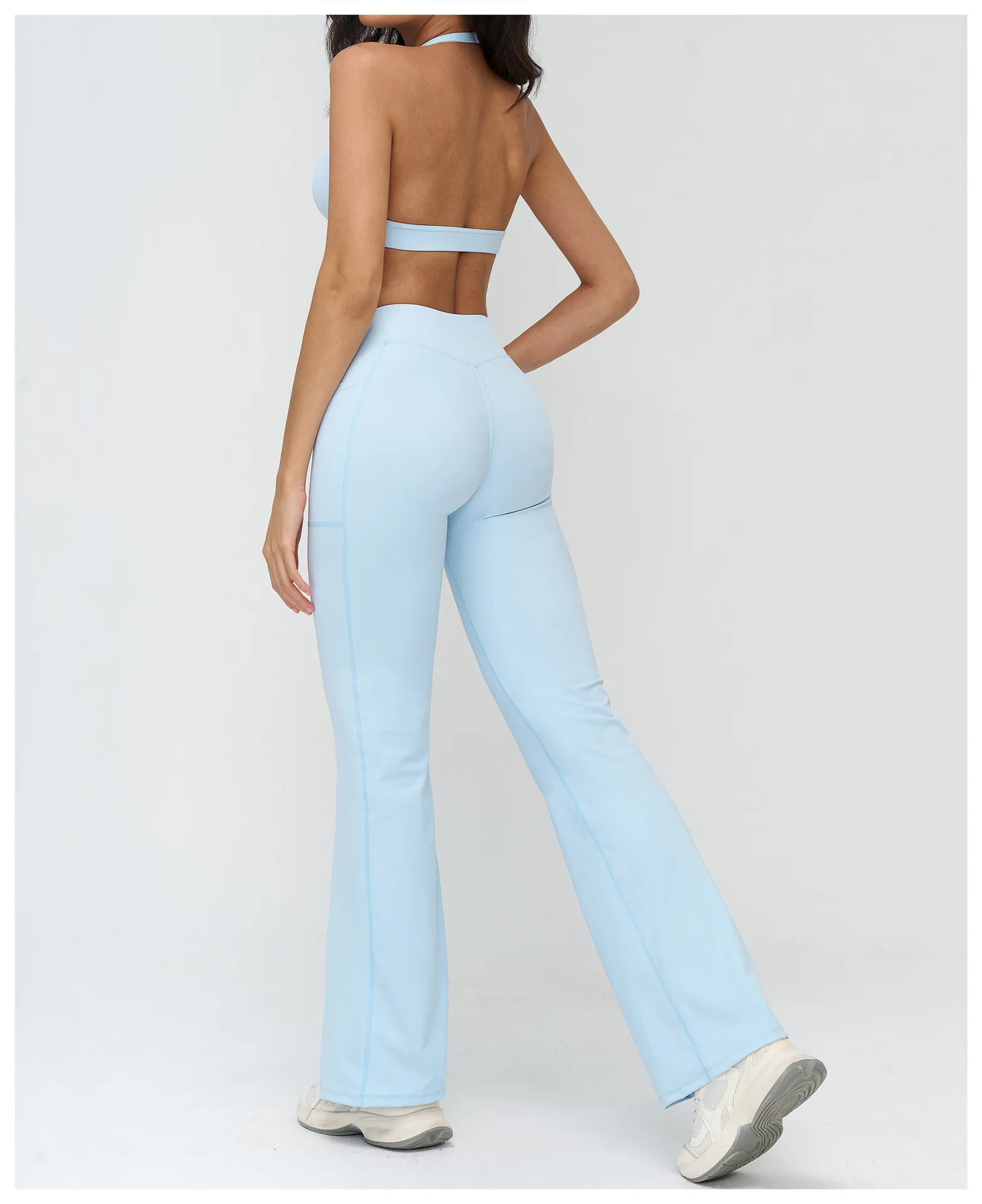 YISHENHON Recyclable Fabric Quick Dry Yoga V Waist Gym Leggings Running Workout Wide Leg Pants Flare Woman Sport Pants