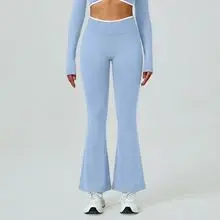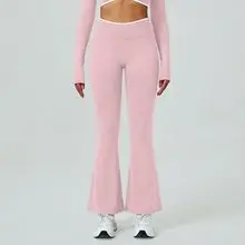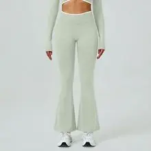 New Arrival High Waist Fitness Running Tummy Control Deportes Gym Sport Black Wide Leg Seamless Flared Leggings for Women
