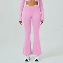 Custom High Waist Fitness Running Tummy Control Deportes Gym Sport Black Wide Leg Seamless Flared Leggings for Women