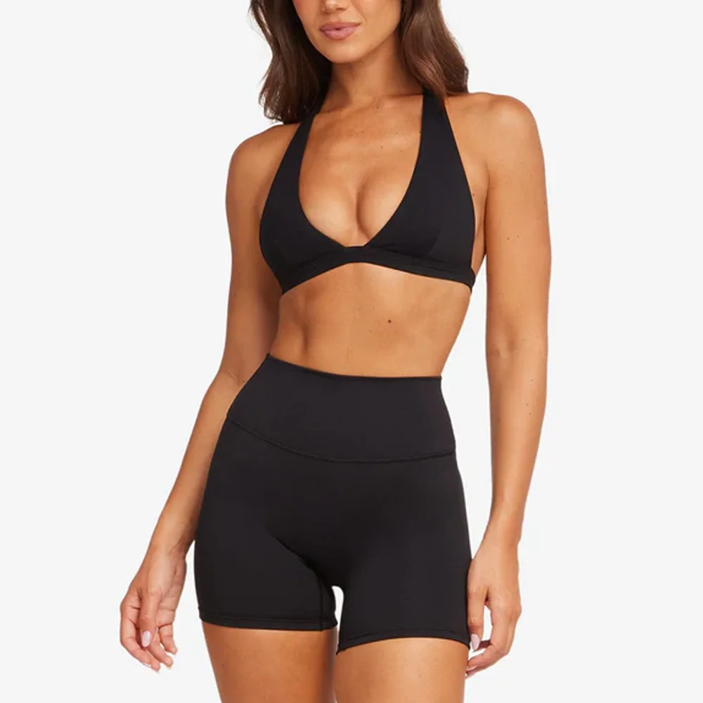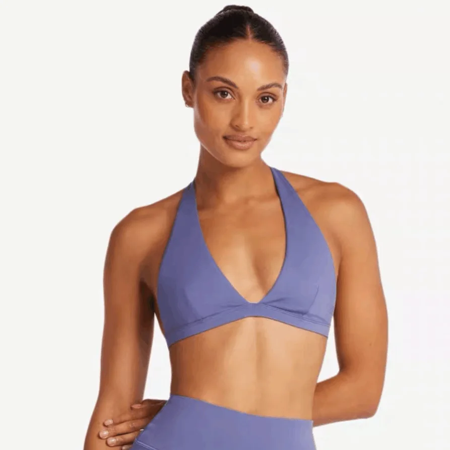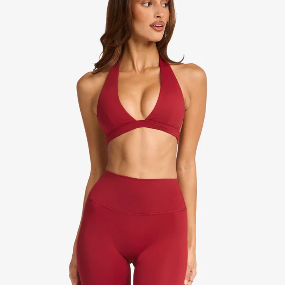 Halter Low-cut V-neck Open Back Soft Flexible Quick Dry Built in Gym High Impact Sports Bra for Women