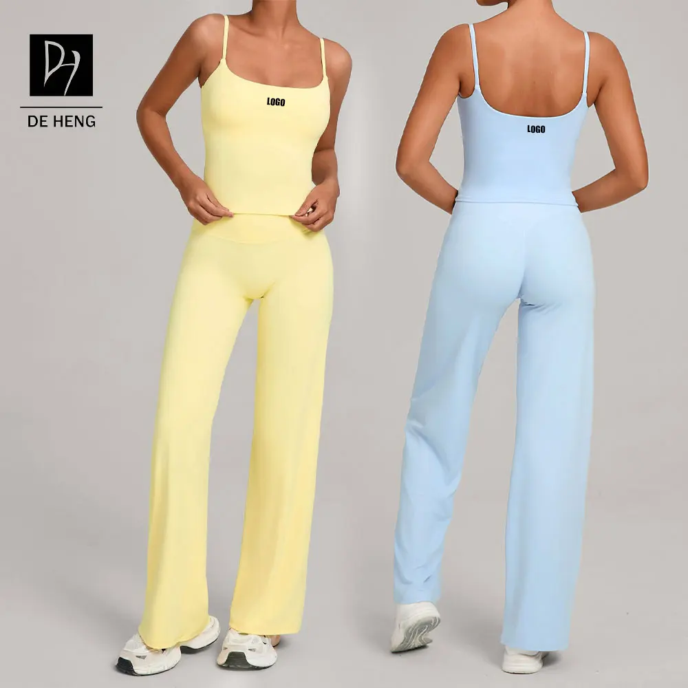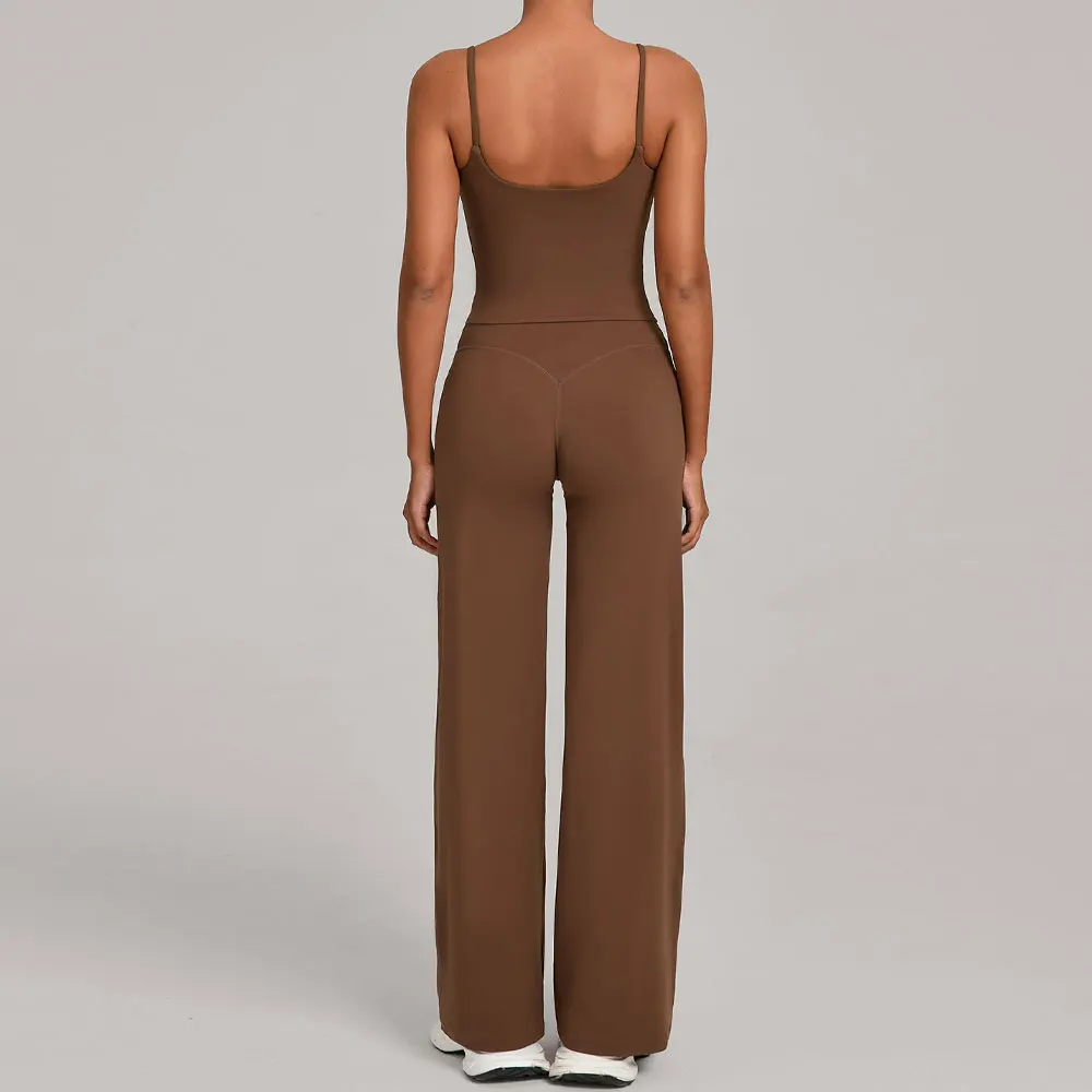 New Yoga Suit Women's Soft U-Back Sports Tank Top High Waisted Straight Leg Pants 2Pcs Gym Fitness Sets