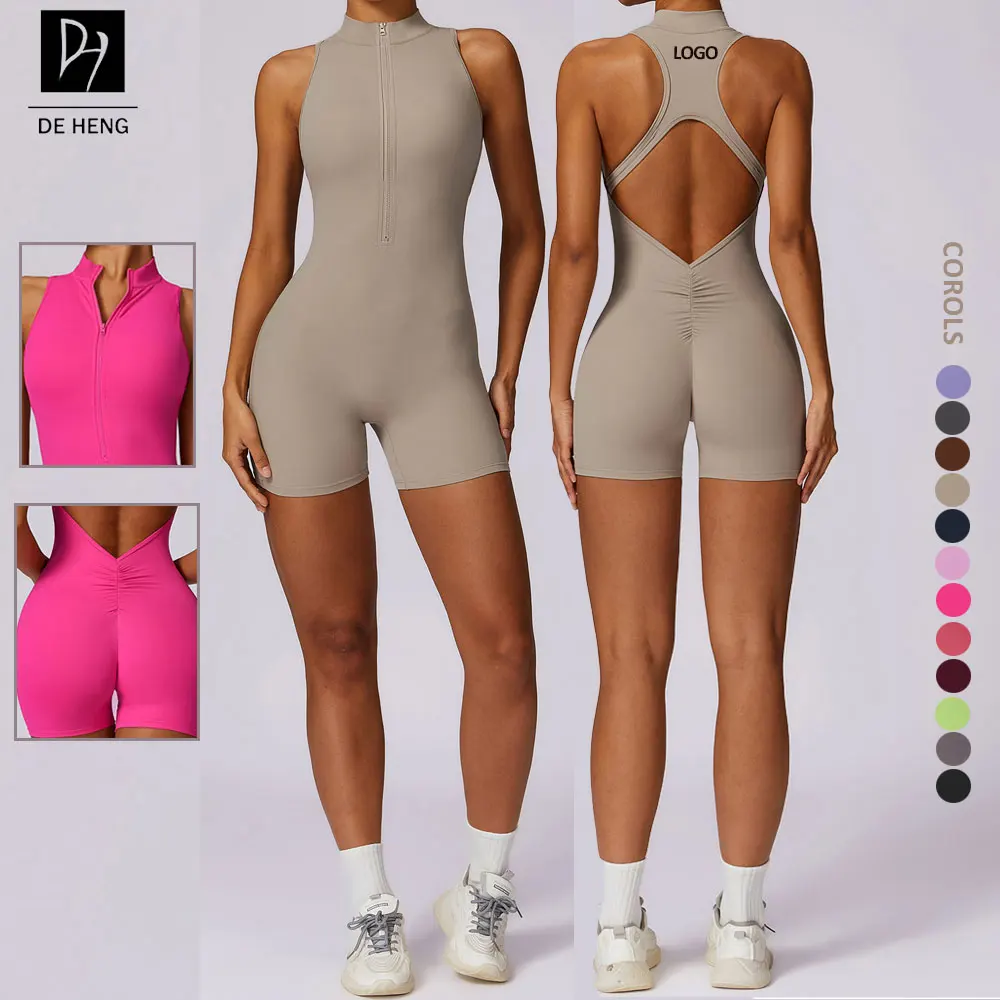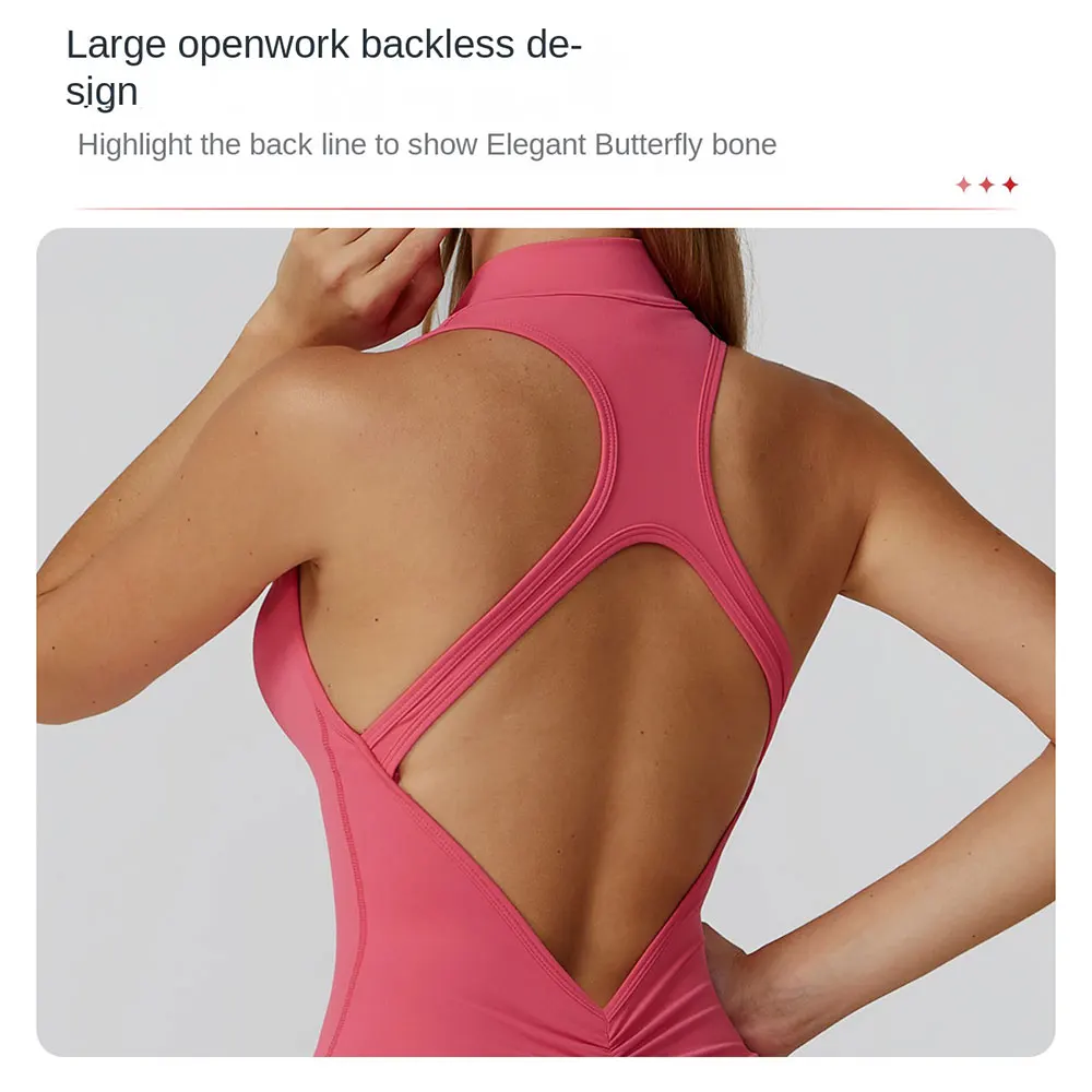 New Sports One Piece Rompers Women Jumpsuit Sleeveless Backless Yoga Bodysuit Activewear Plus Size Half Zipper Women Jumpsuits