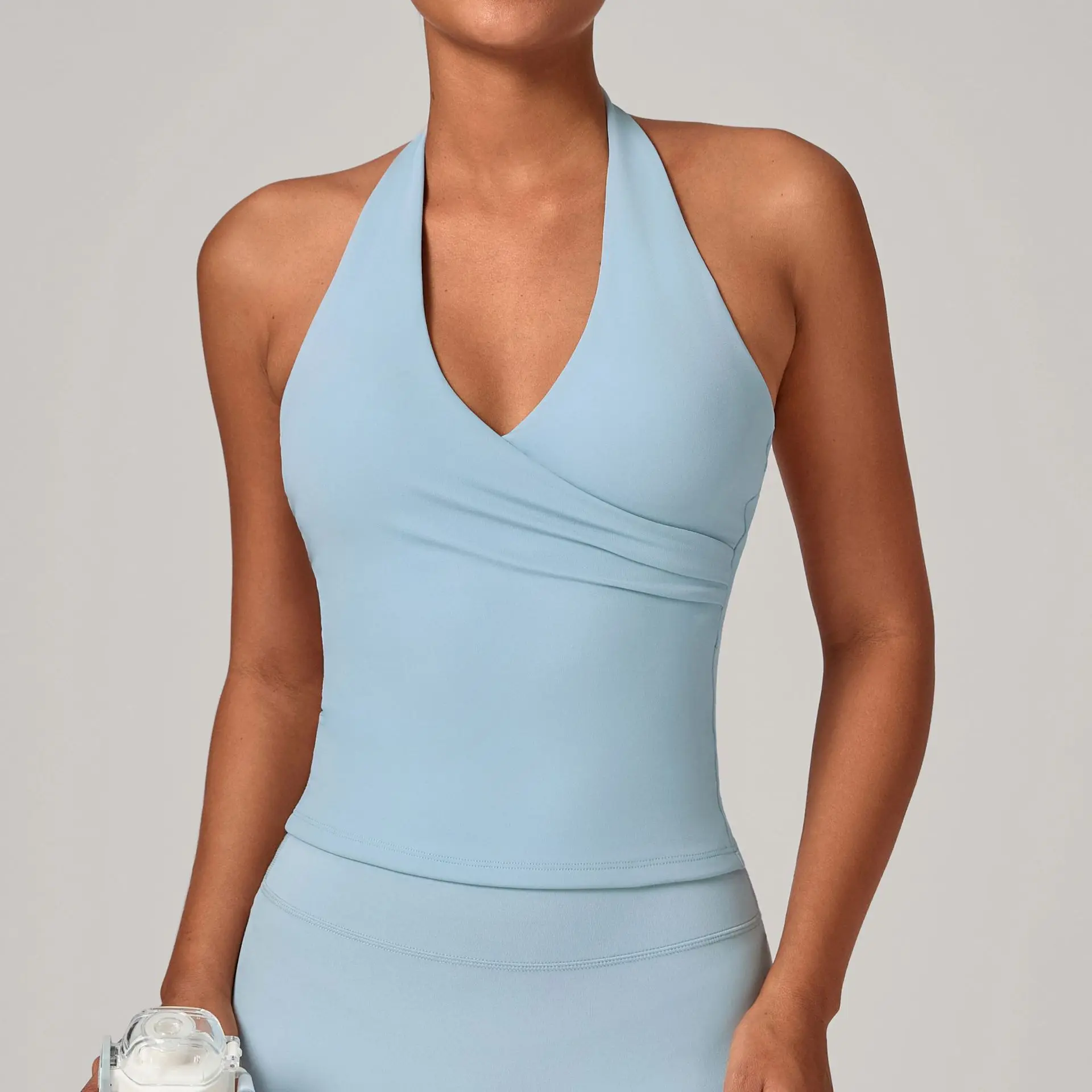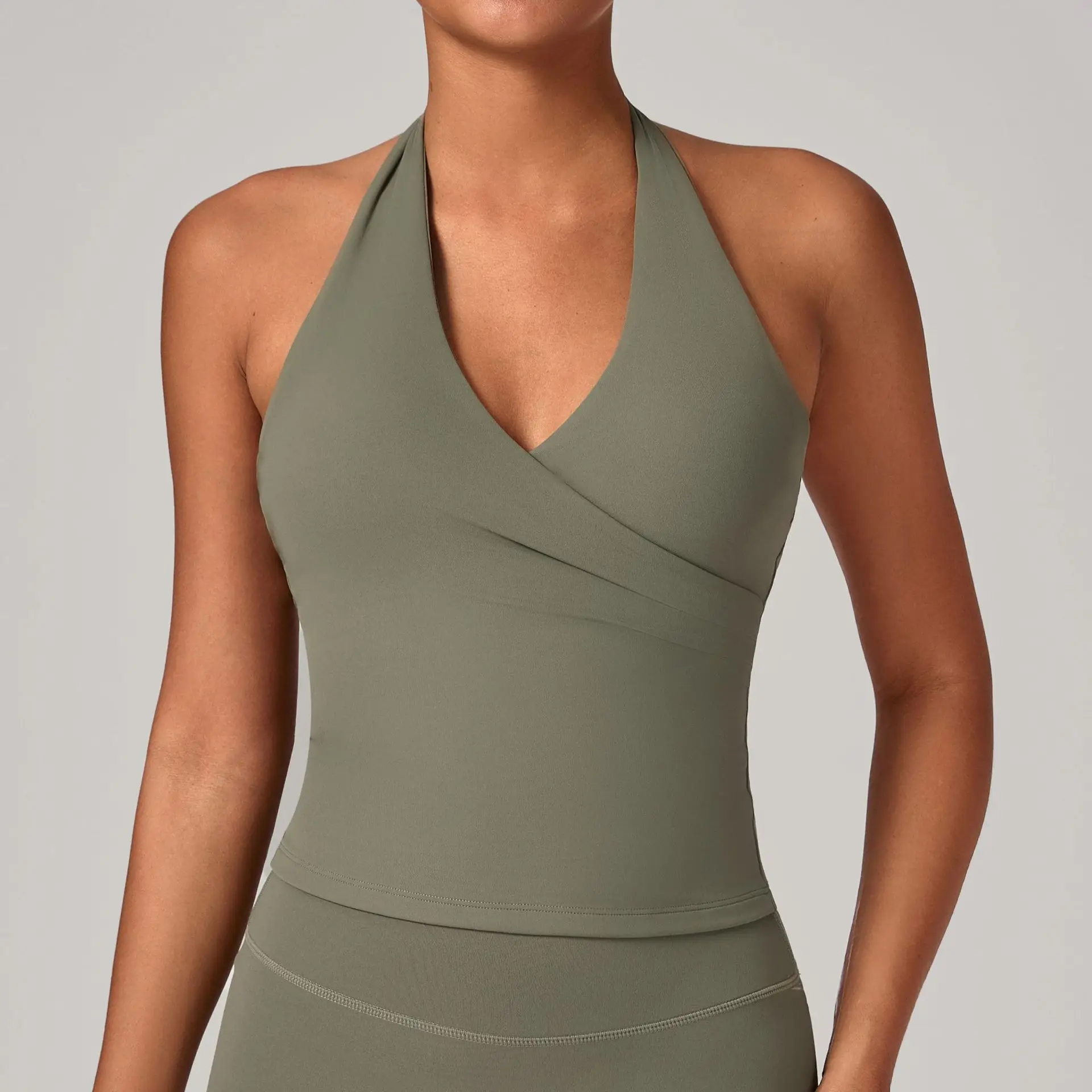 2026 New Halter High Quality V Neck Quick Dry Workout Open Back With Padding Custom Logo Gym Sports Fitness Yoga Top