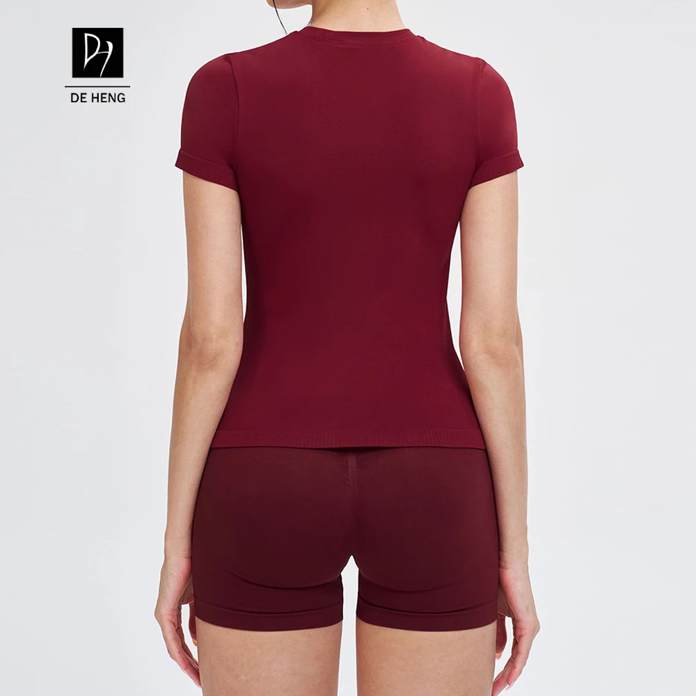 YISHENHON 2026 New Design Quick Drying Casual Tight Short Sleeve Yoga Wear Women High Intensity Running Sports Fitness T-shirt