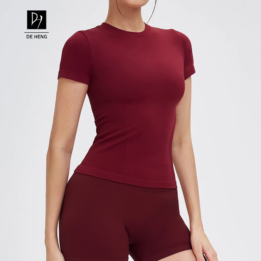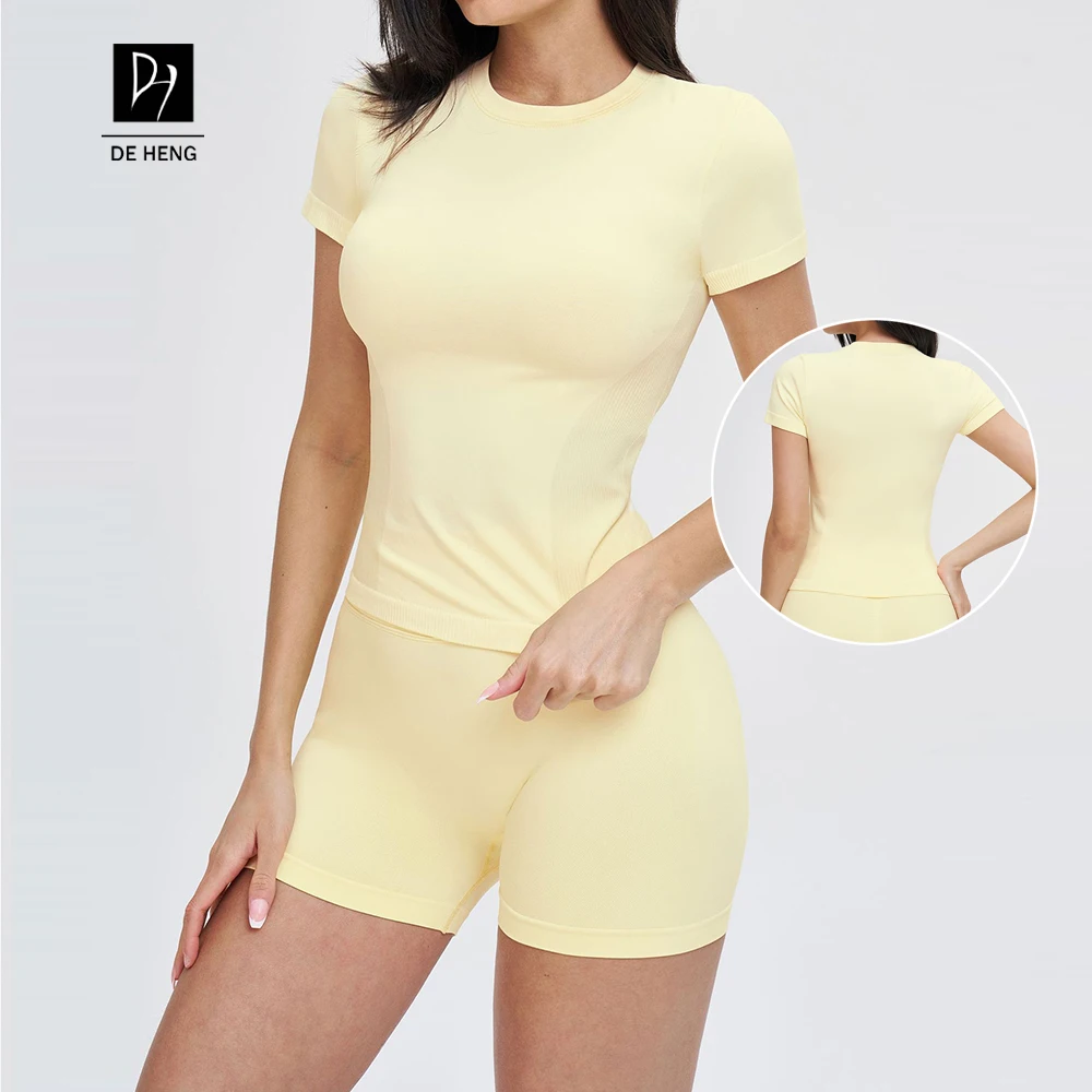 YISHENHON 2026 New Design Quick Drying Casual Tight Short Sleeve Yoga Wear Women High Intensity Running Sports Fitness T-shirt
