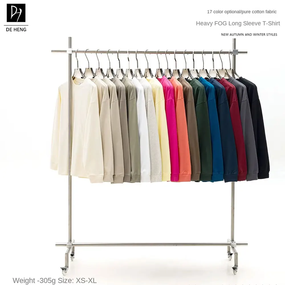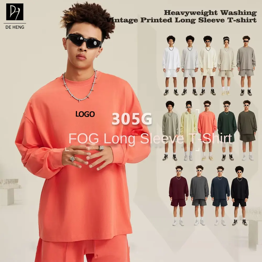 Custom Print Logo Blank Pure 100% Cotton Streetwear 305G T-Shirt Oversized T-Shirt Heavyweight Solid Long Sleeve Men T-Shirt
