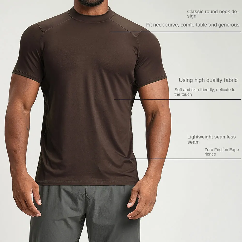Custom Nylon Short Sleeve Workout Shirts Crew Neck Breathable Fitness Gym Compression T-shirts Athletic Running Active Top