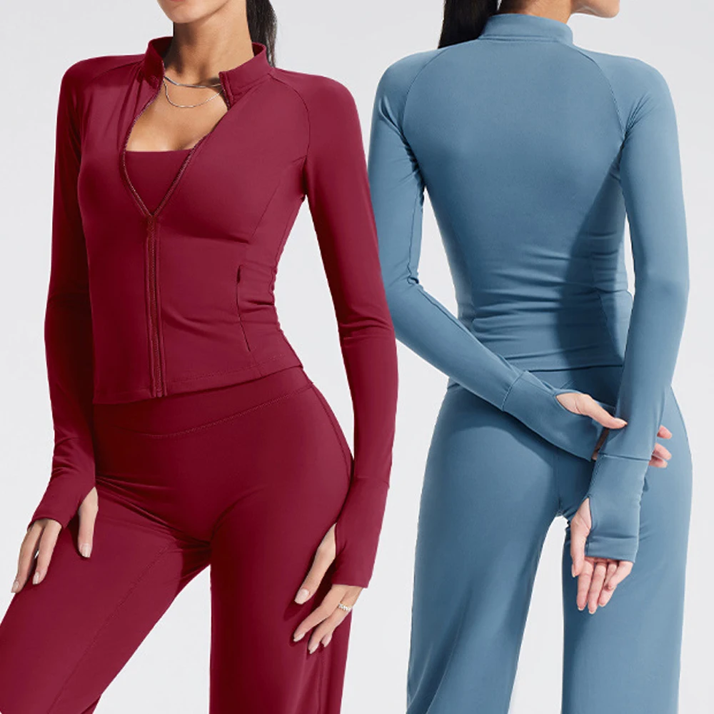 Long Sleeve Zip Pockets Thumb Hole Solid Breathable Quick Dry Workout Custom Gym Sports Fitness Yoga Jacket