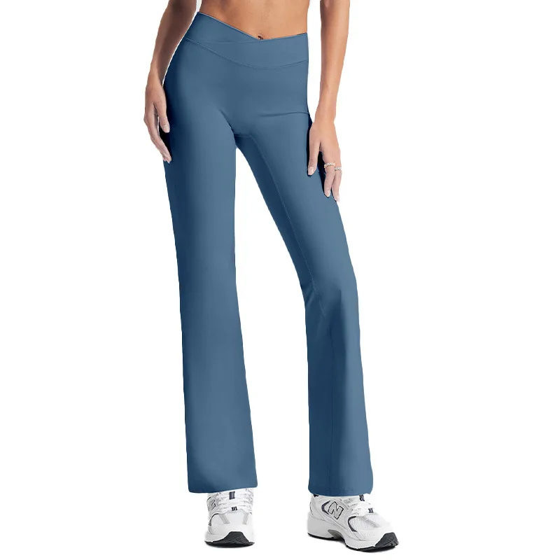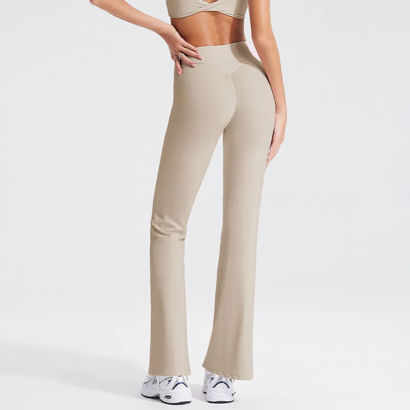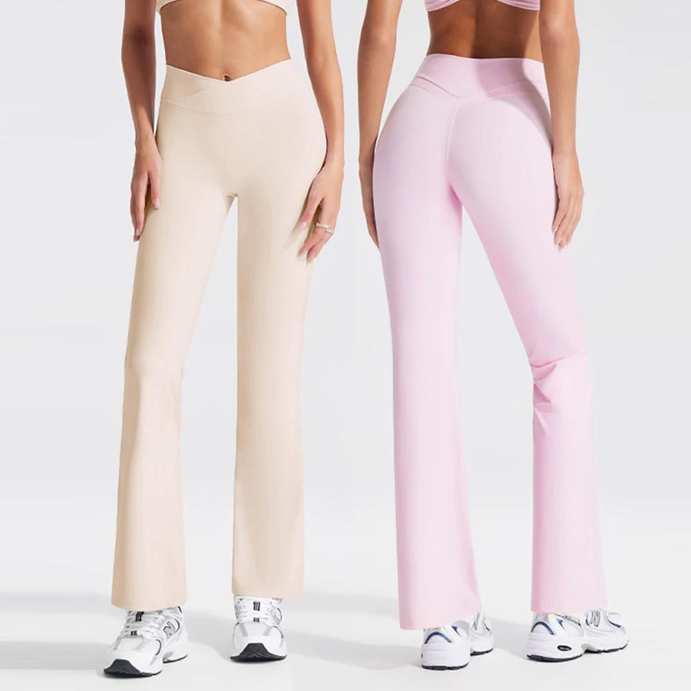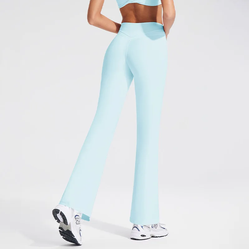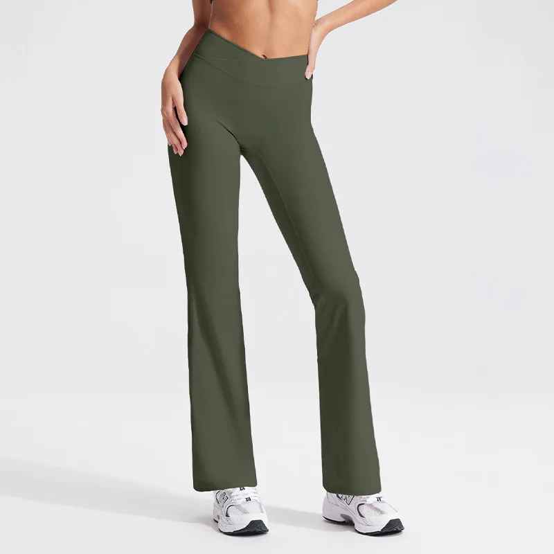 YISHENHON Recyclable Fabric Quick Dry Yoga V Waist Gym Leggings Running Workout Wide Leg Pants Flare Woman Sport Pants