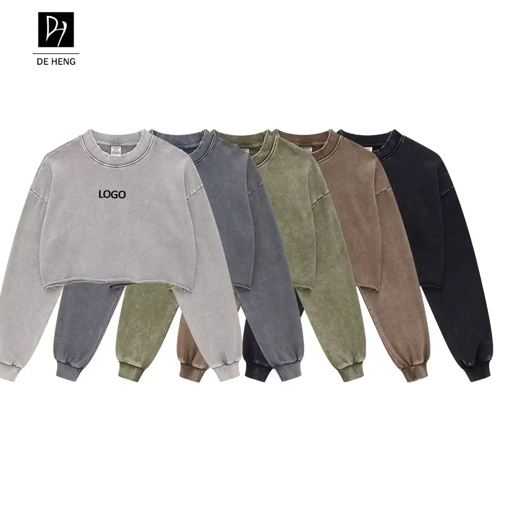 YISHENHON Hooded and Pants Custom Design Unisex Crewneck Sweatshirt Men Wholesale High Quality French Terry Two Piece 445 Grams