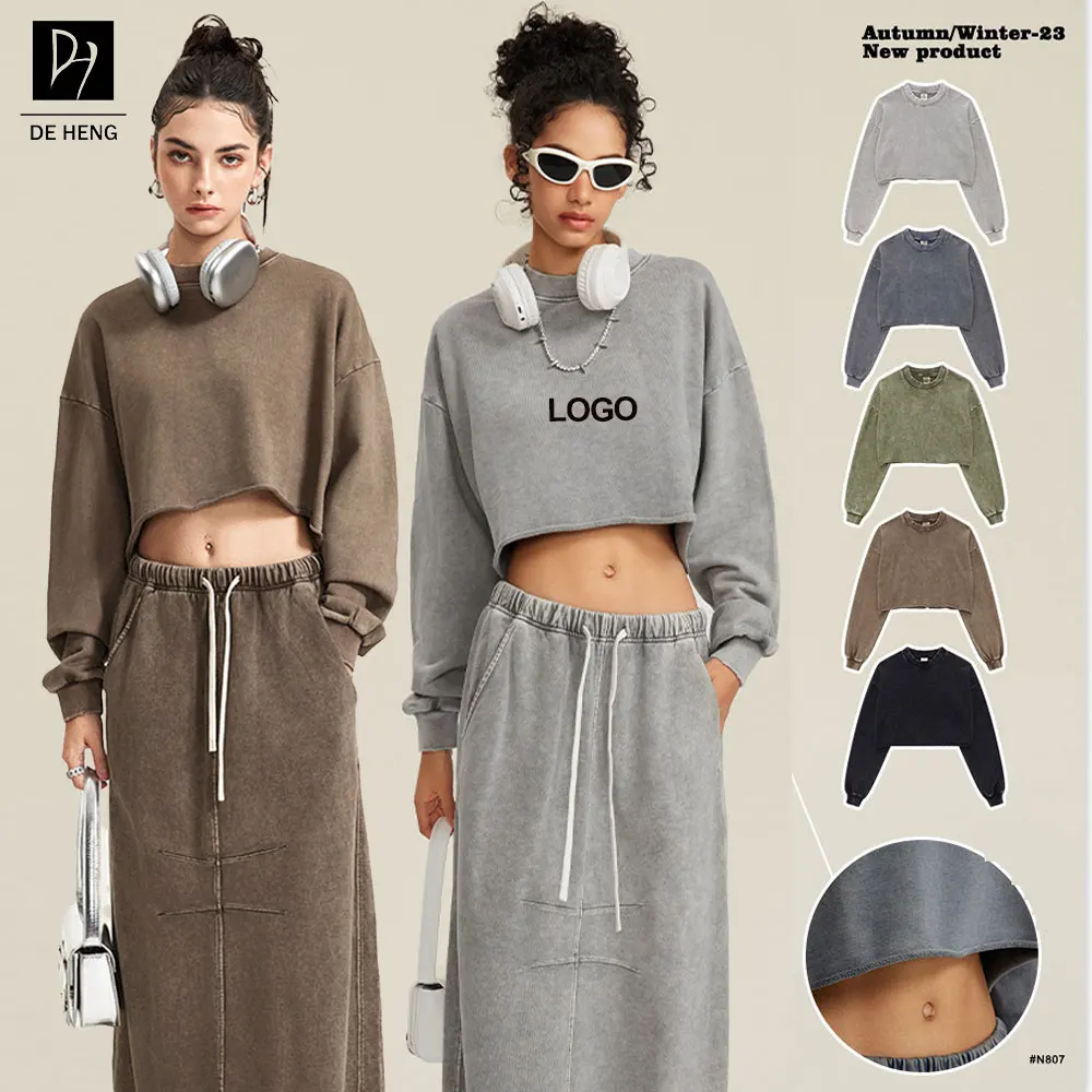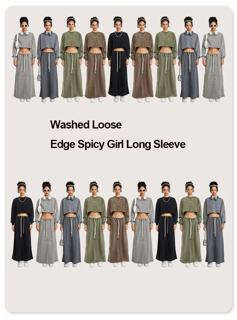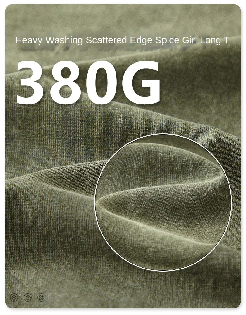 New Heavy Weight Customized 100% Cotton 380gsm Women T-Shirt Crewneck Washed Loose Edgel Long Sleeve Heavyweight Women T-Shirt