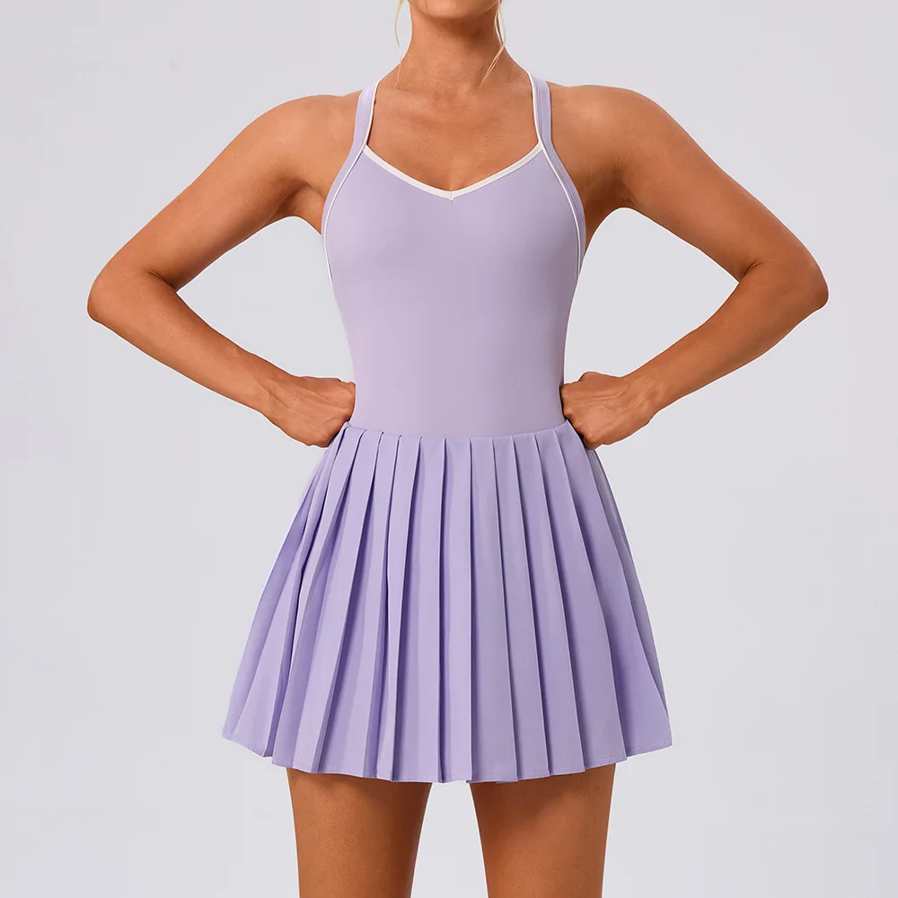 YISHENHON Women's A-Line Tennis Dress Hot Selling Wholesale Sportswear Runninng Suit with Elegant Tennis Skirt
