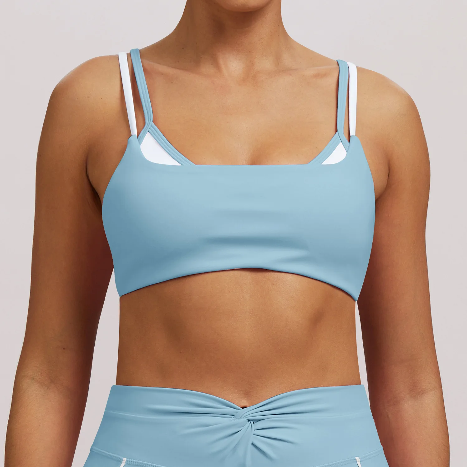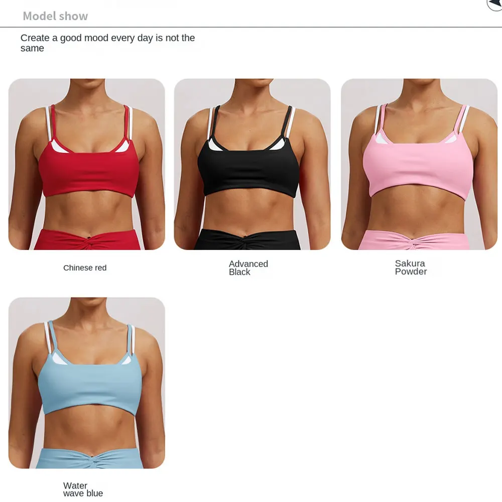 OEM New Padded Activewear Solid Yoga Bra Fitness Breathable Women Double Shoulder Straps Gym Running Pilates Crop Top