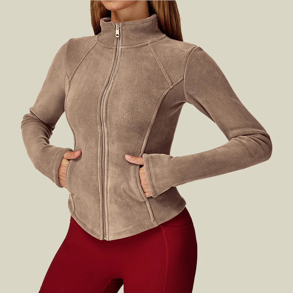Women's Active Sports Jacket Breathable Sherpa Lightweight Yoga Running Training Jacket Zipper Solid Exercise