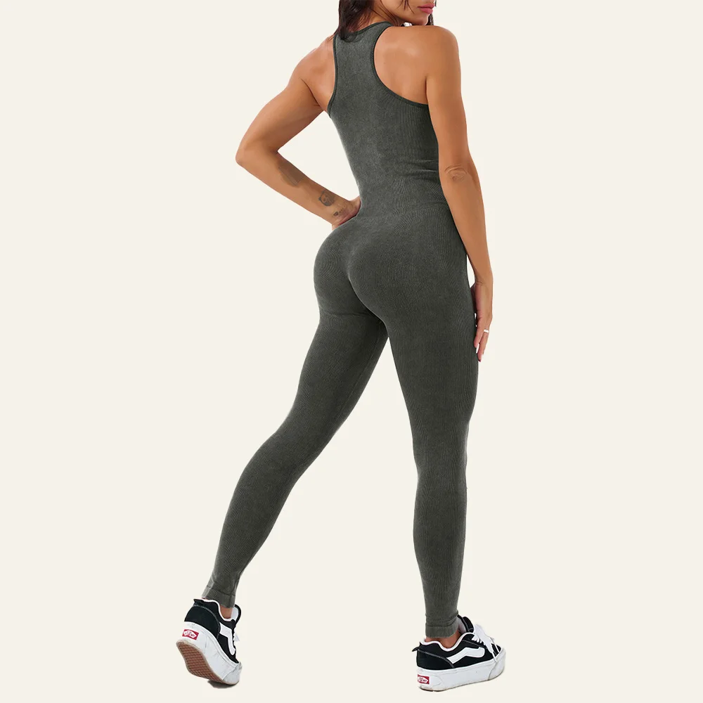 Seamless One-piece Yoga Wear Acid Wash Custom Logo Sexy Zip up Butt Lift Gym Workout Yoga Sports Jumpsuits for Women