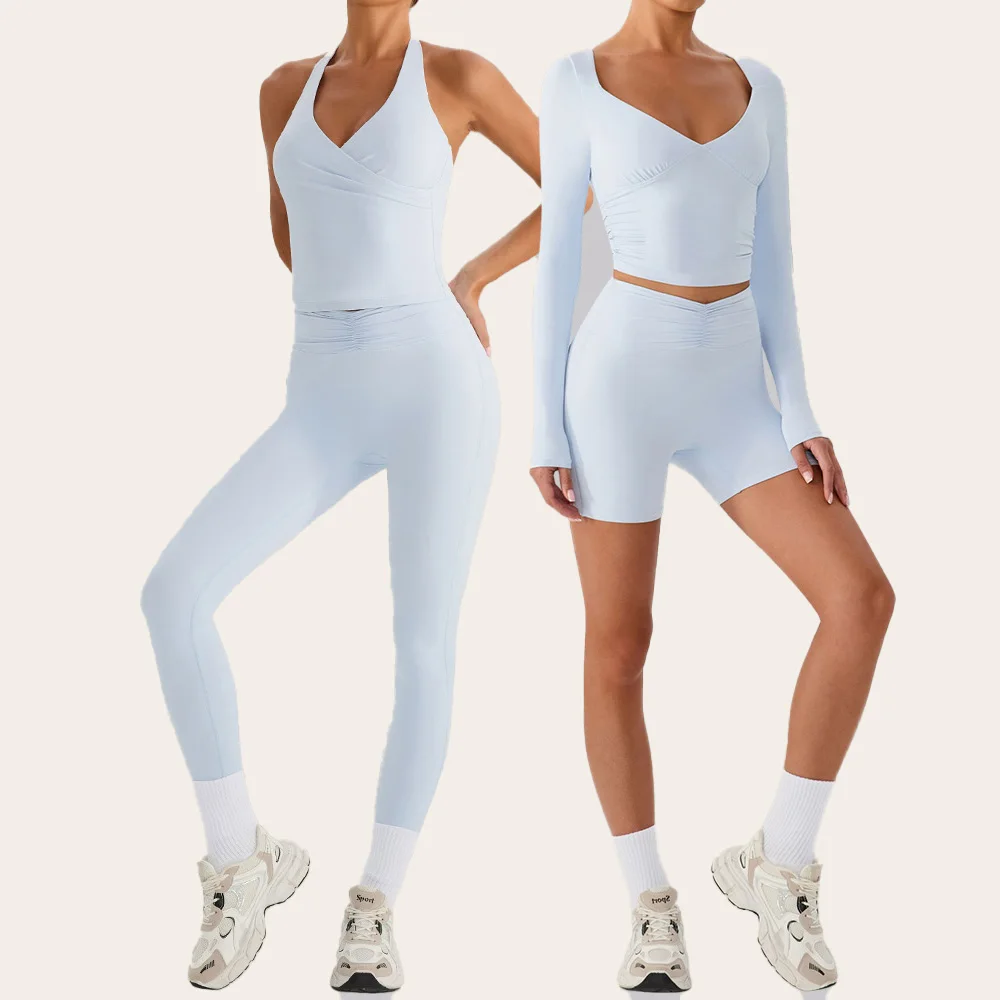 China Sports Clothing Manufacturer Fall Lounge Wear Ladies Workout Fitness Clothing Set Halter Neck Tank Top Tights Sportswear