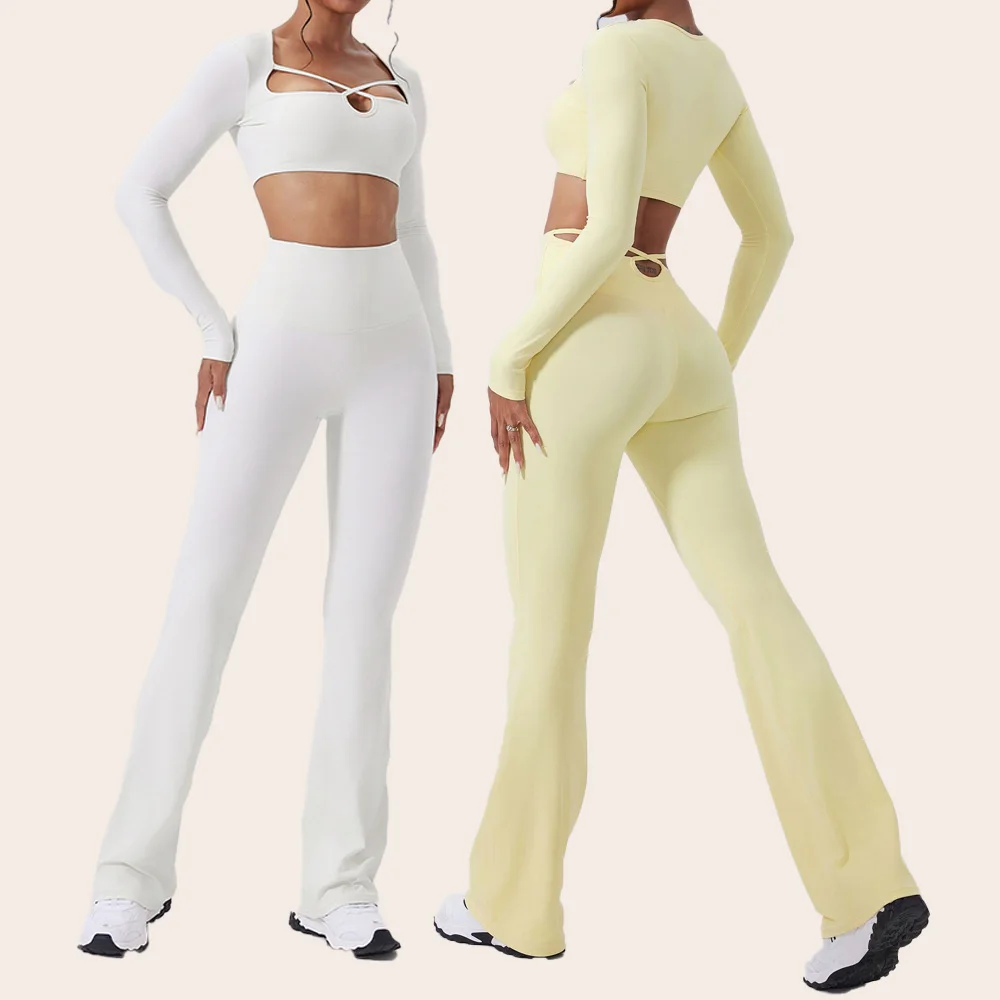 Wholesale Long Sleeve Yoga Fitness Front Cross Thin Straps Activewear Fitness Sports Sets Outdoor Running Suits