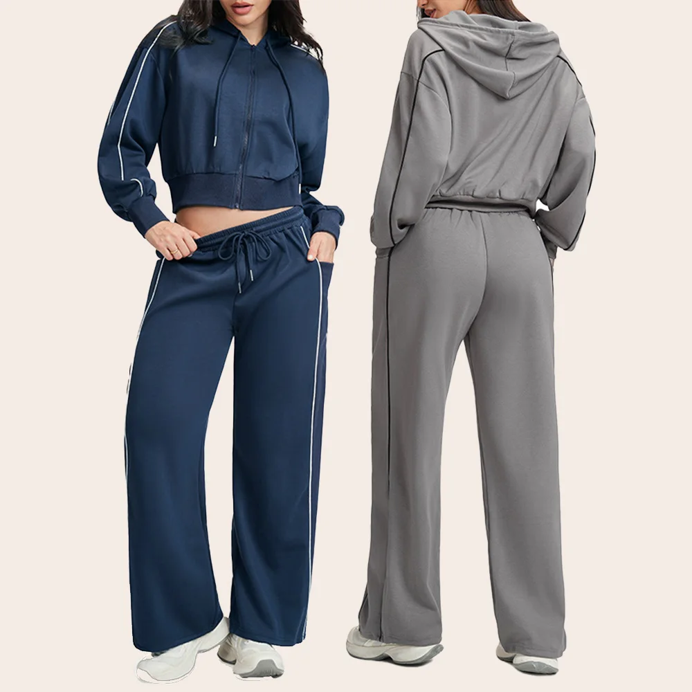 Wholesale Zip-Up Long-Sleeved Sweatsuit Hoodie and Jogging Set Outfit Women Jogger Set 2 Pieces Tracksuit Sets