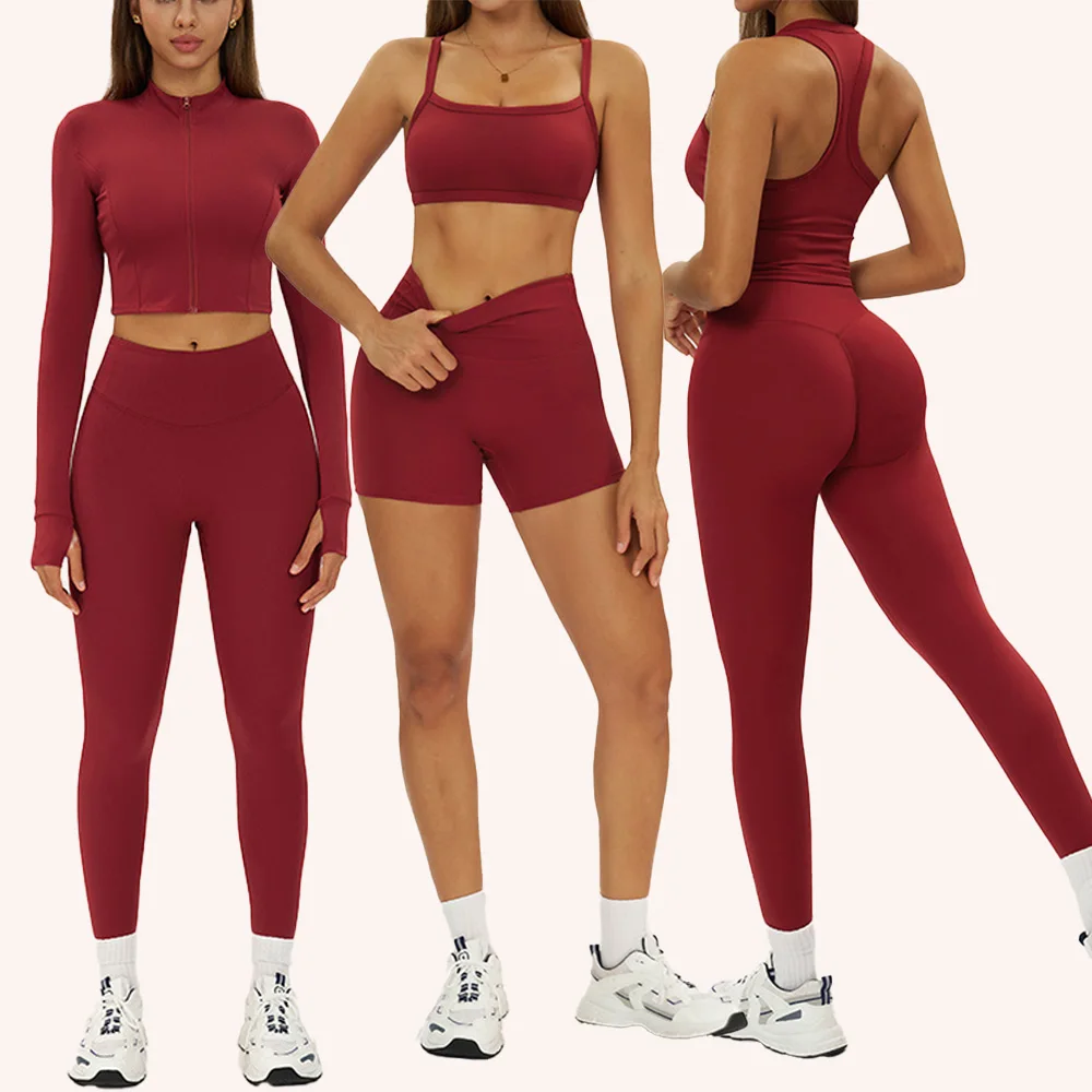 2026 Plus Size Women's Workout Gym Fitness Sets Activewear Yoga Suit Zipper Jacket XL Size Solid 5 Pieces Sports Clothing