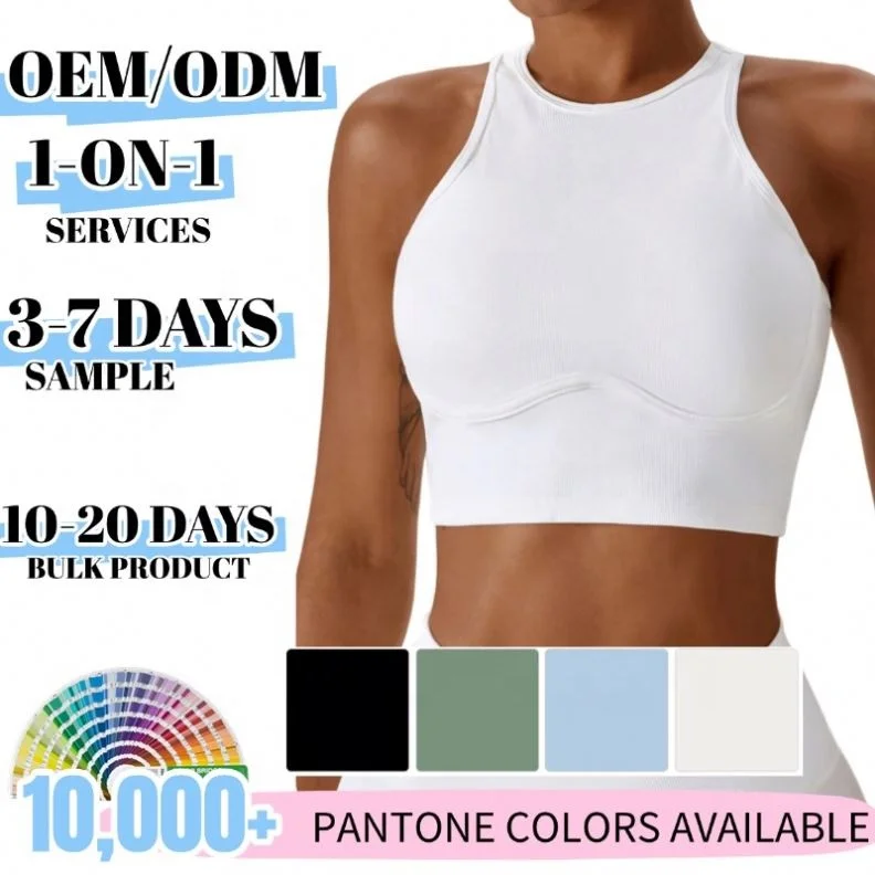 Seamless Ribbed Yoga Sports Bra for Women Stretchy Support Workout Tank