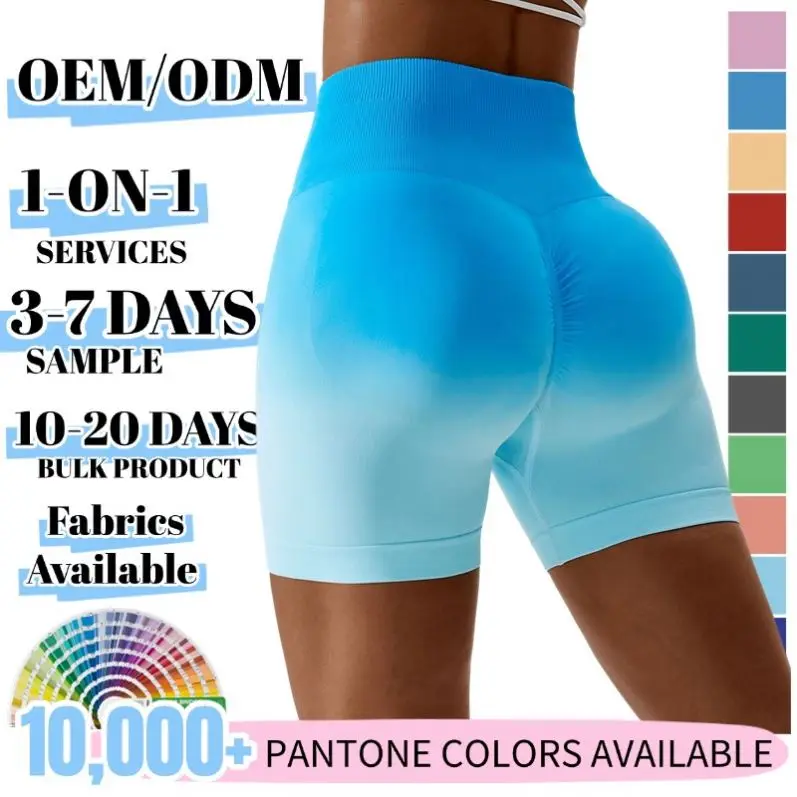 Yoga Workout Seamless Ombre Shorts with High Waist Butt Defining Fit Four Way Stretch and Moisture Wicking Fabric