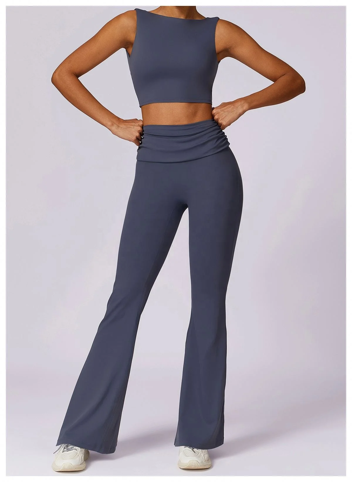YISHENHON Recyclable Fabric Quick Dry Yoga V Waist Gym Leggings Running Workout Wide Leg Pants Flare Woman Sport Pants