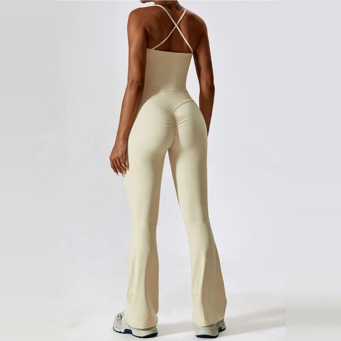 YISHENHON Recyclable Fabric Quick Dry Yoga V Waist Gym Leggings Running Workout Wide Leg Pants Flare Woman Sport Pants