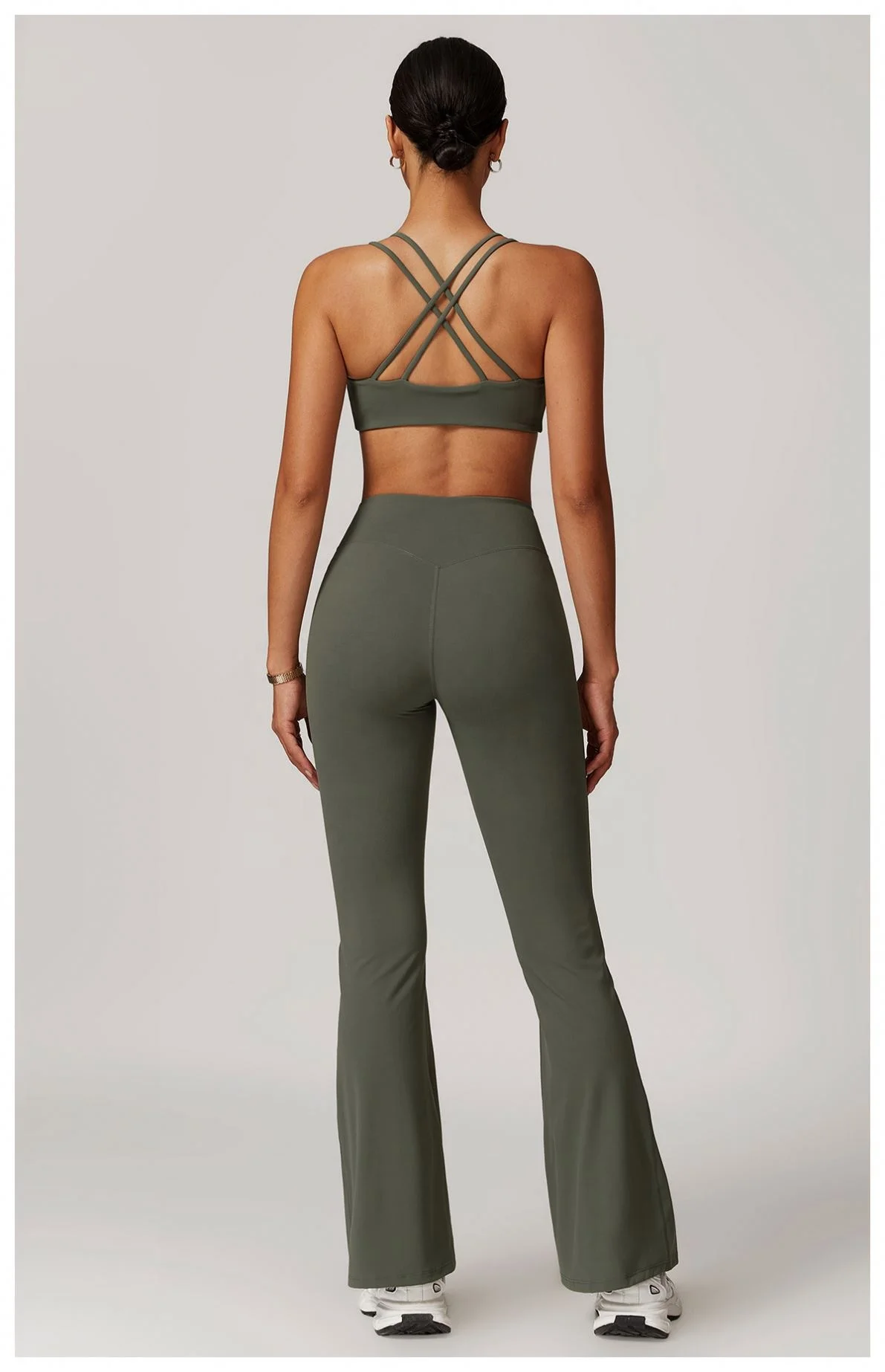 YISHENHON Recyclable Fabric Quick Dry Yoga V Waist Gym Leggings Running Workout Wide Leg Pants Flare Woman Sport Pants