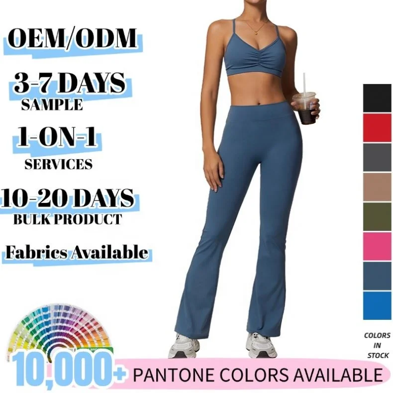 YISHENHON Recyclable Fabric Quick Dry Yoga V Waist Gym Leggings Running Workout Wide Leg Pants Flare Woman Sport Pants