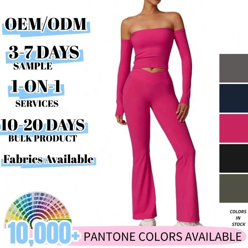 YISHENHON Recyclable Fabric Quick Dry Yoga V Waist Gym Leggings Running Workout Wide Leg Pants Flare Woman Sport Pants