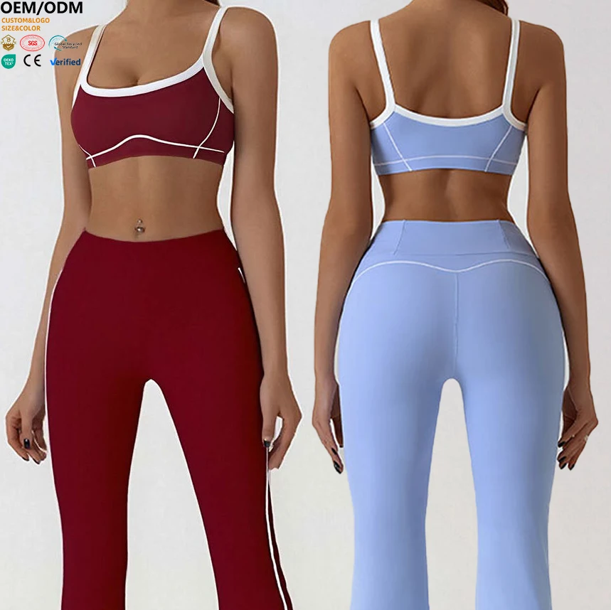 YISHENHON Recyclable Fabric Quick Dry Yoga V Waist Gym Leggings Running Workout Wide Leg Pants Flare Woman Sport Pants