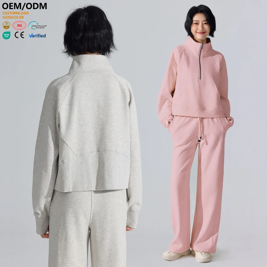XW-YC445 Winter Warm Sweat Wicking Gym Clothing Activewear Custom Yoga Long Sleeves Zipper Fitness Women's Sports Top