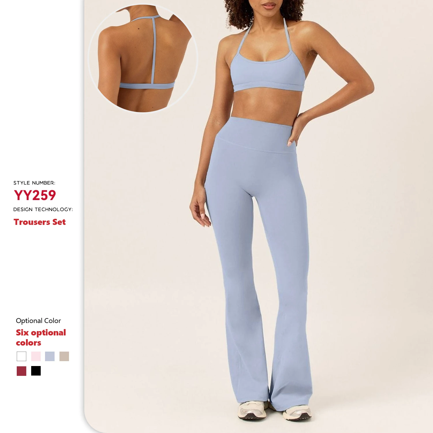 XW-YY259 Wholesale Custom Logo Fashionable Breathable Quick-Dry Bell Bottoms Yoga Bra Set with Back Cutouts Women Yoga Set