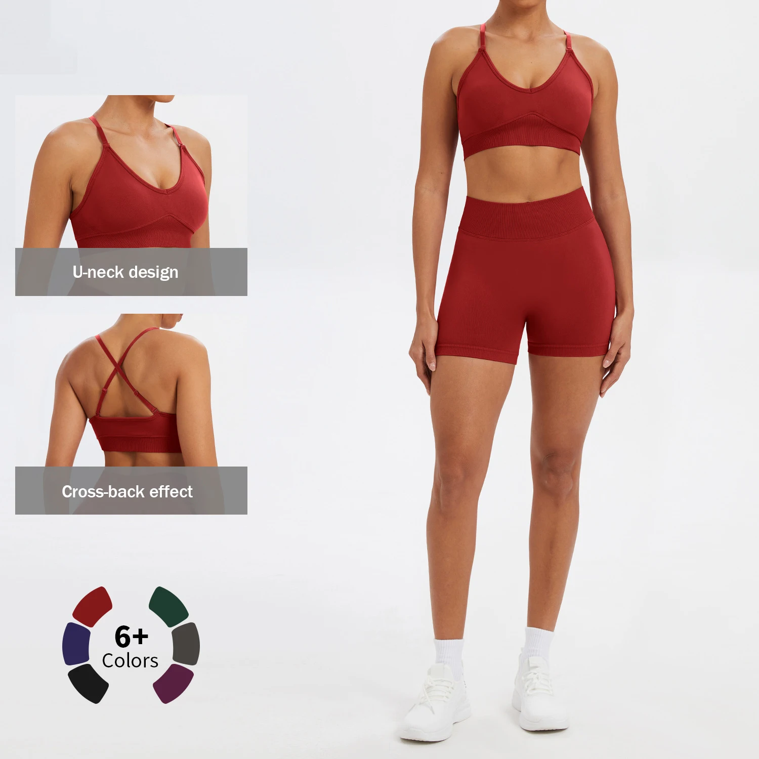 XW-3010-3 Sportswear Manufacturinghigh Two Piece Set Impact Sports Bra Breathable Butt Lifting Short Women's Gym Activewear