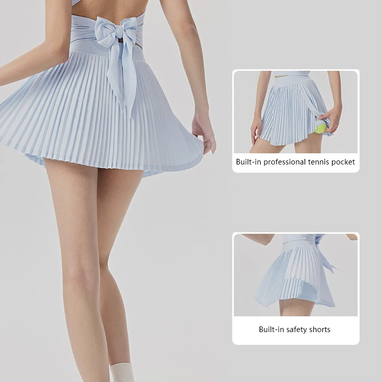 YISHENHON Summer Ladies Custom Logo Sport Skirt High Quality Fitness Apparel Breathable Sport Running V Cross Tennis Skirts