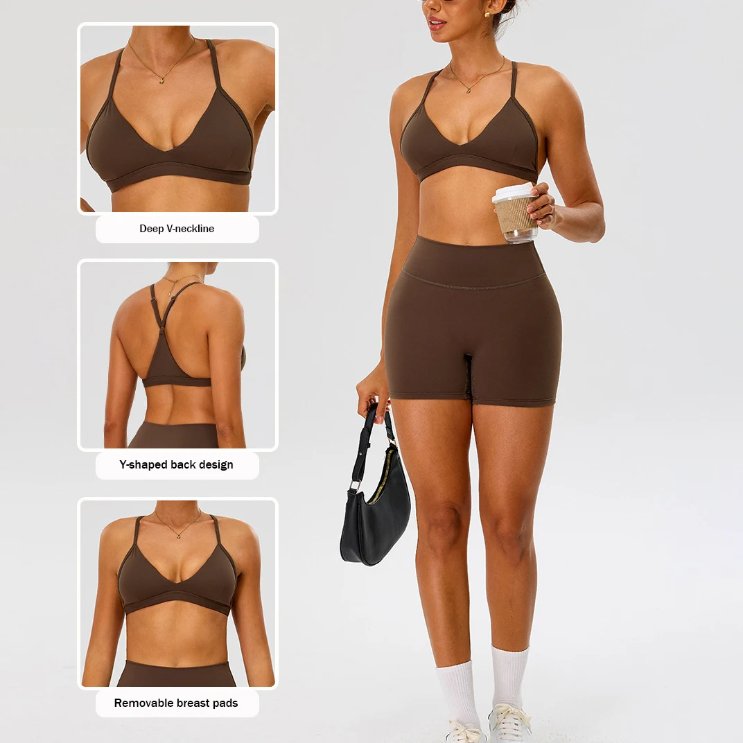 XW-TM0277 Women Custom High Quality Comfortable Breathable Chest Pad v Neck Y Shape Gym Clothing Activewear Yoga Sports Bra