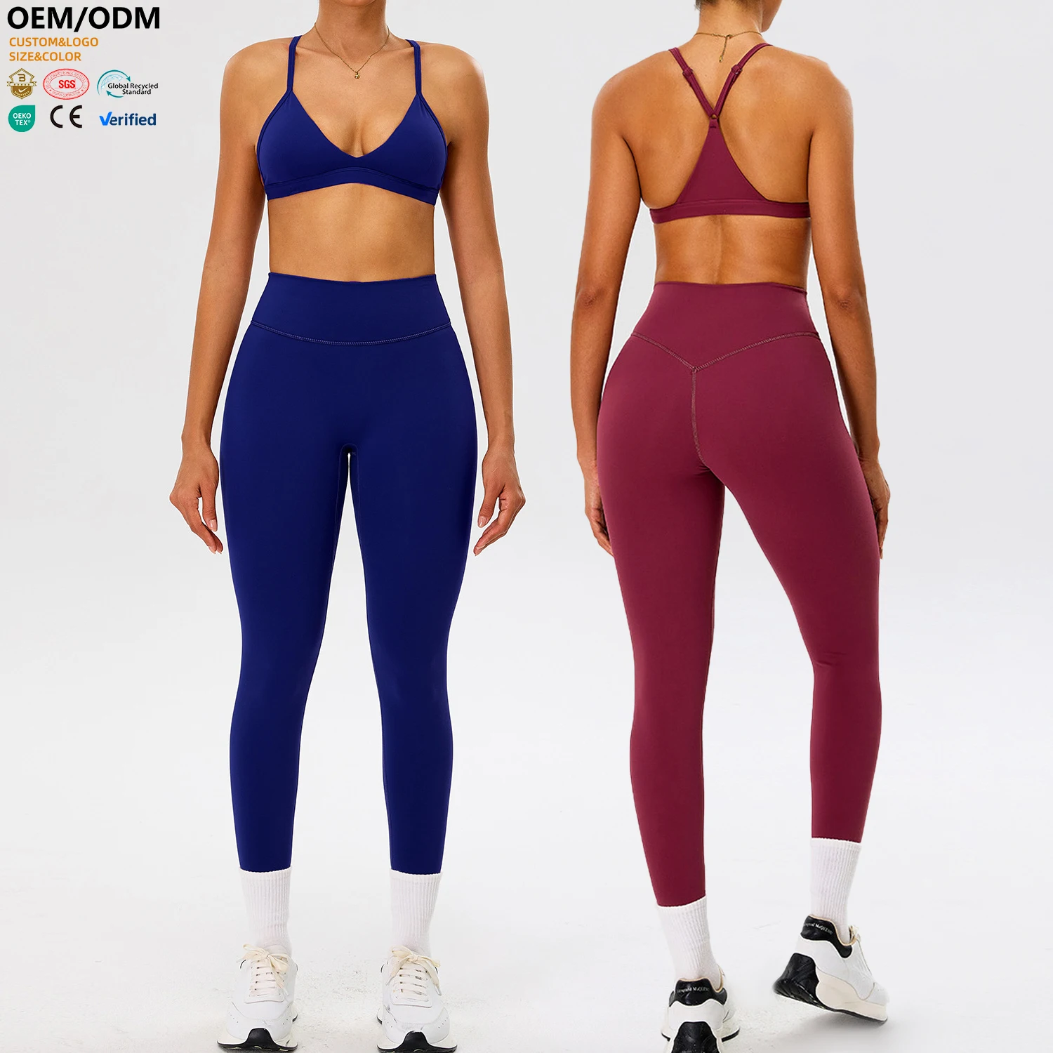 XW-TM0277Y Stylish Solid Moisture Wicking Gym Activewear Leggings Sports Bra Lightweight Stretchy Athletic Yoga Wear Set