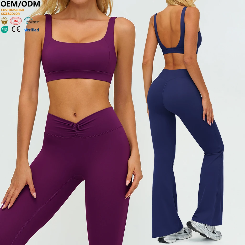 YISHENHON Recyclable Fabric Quick Dry Yoga V Waist Gym Leggings Running Workout Wide Leg Pants Flare Woman Sport Pants