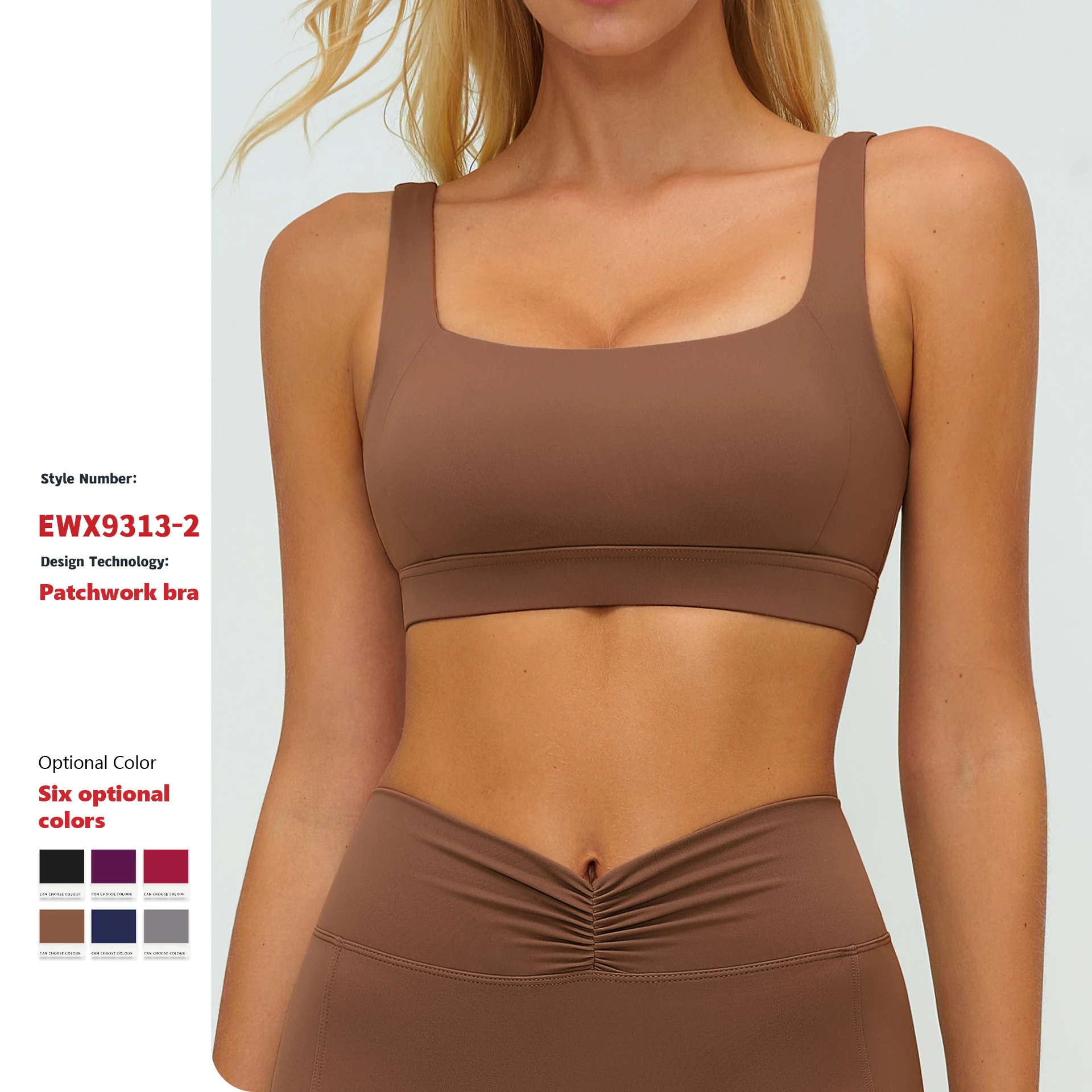 XW-EWX9313-2 Women Slimming Square Neck Custom Solid Color Gym Clothing Activewear Quick Dry Breathable Yoga Sports Bra