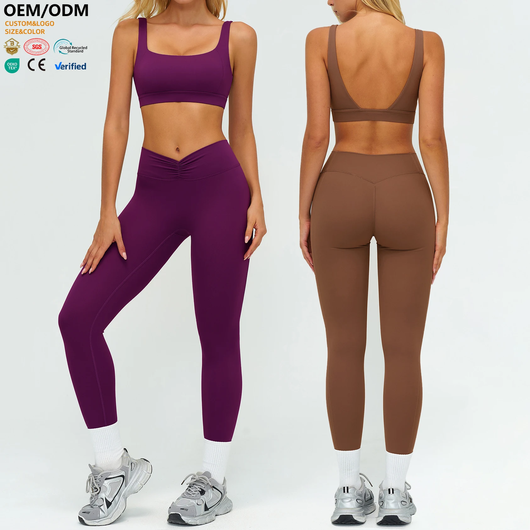 XW-TZ9313-4 Wholesale Slimming Activewear Versatile Gym Clothing Workout Fitness Training Chest Pad 2 Piece Yoga Wear Set