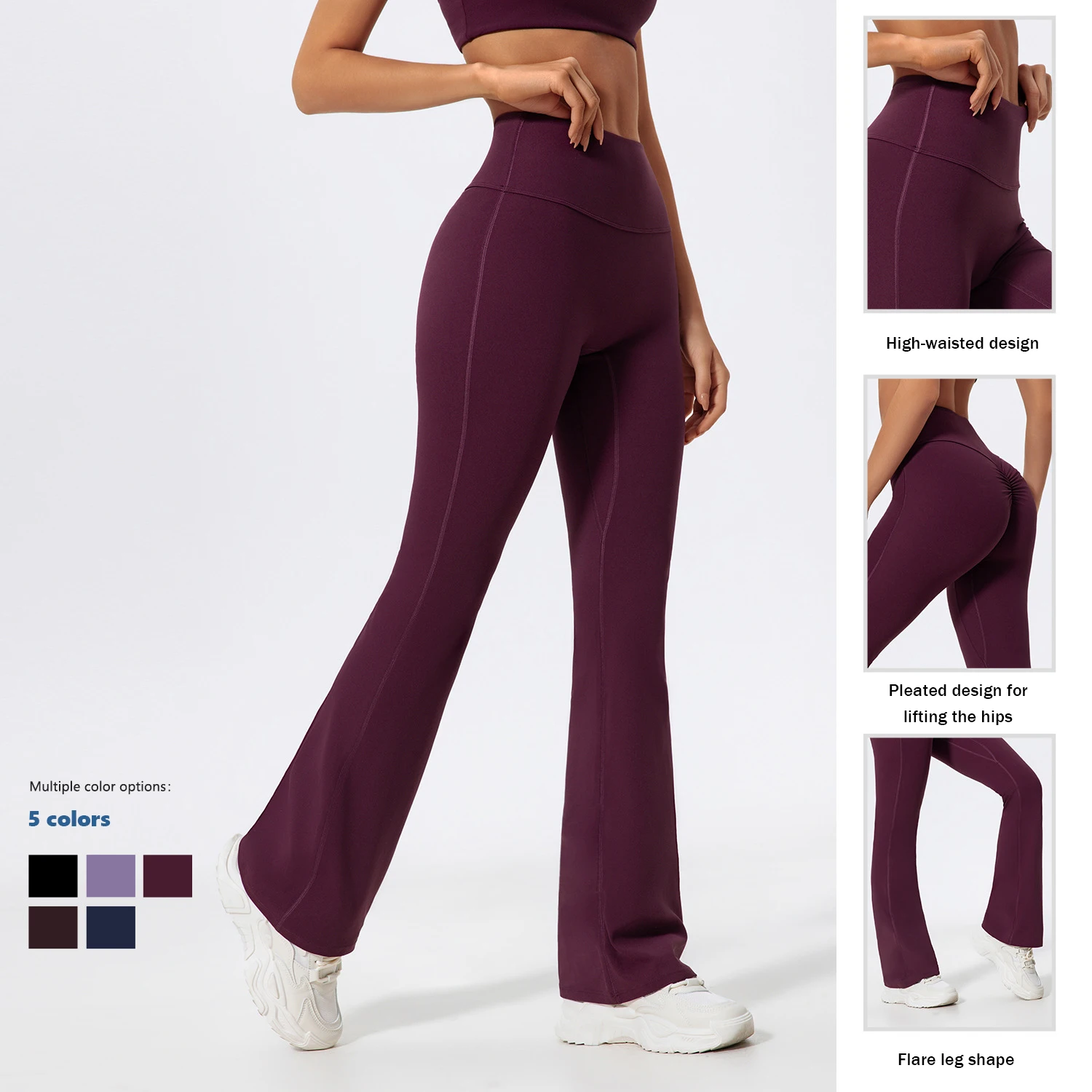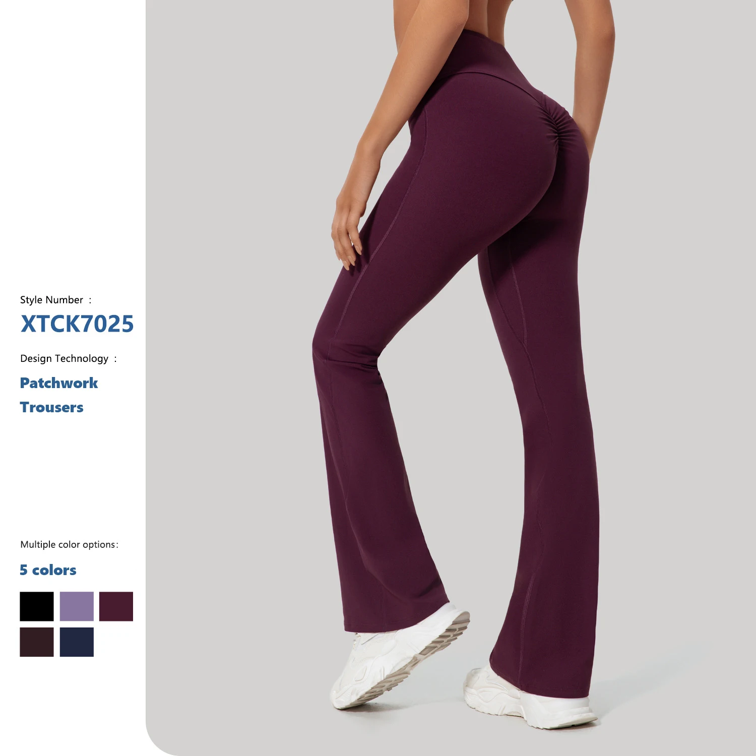 XW-XTLBK7025 Gym Clothing Moisture Wicking Pleated Activewear Stretchy Comfortable Quick Dry Elastic Flare Yoga Pants