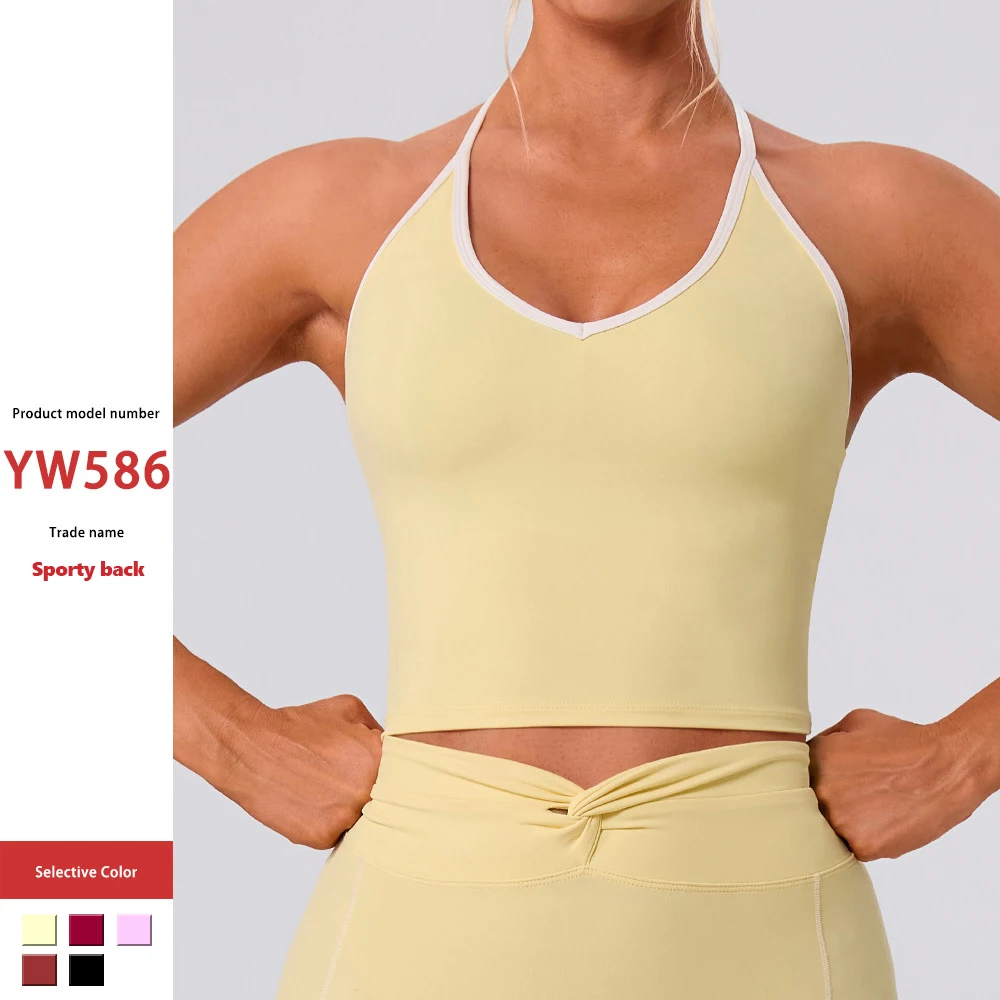 XW-YW586 Wholesale Breathable Custom Elastic Comfortable Fitness Exercise Sleeveless Halter Neck Yoga Women's Sports Top
